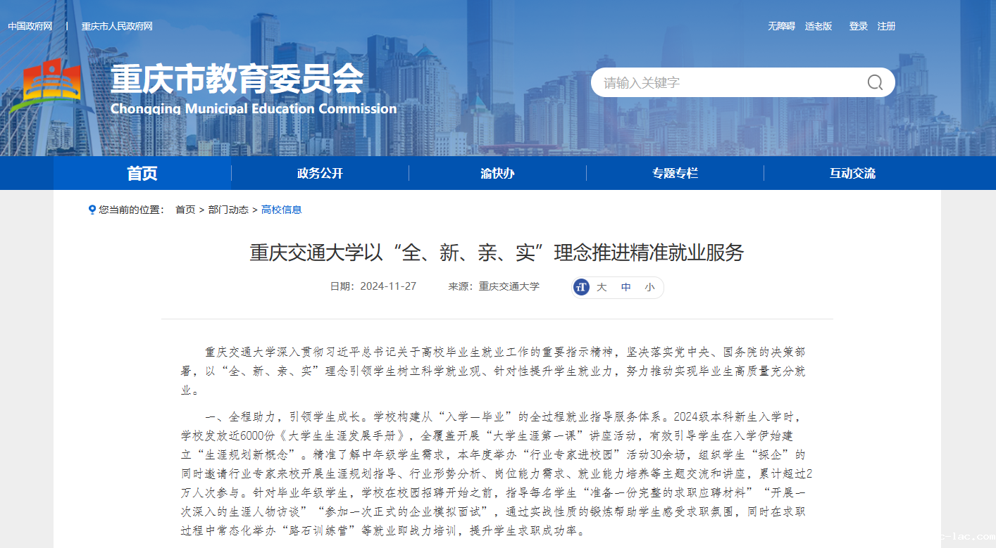 重庆市教育委员会:老伟德网上娱乐以“全、新、亲、实”理念推进精准就业服务_高校信息_部门动态_重庆市教育委员会 (cq.gov.cn)