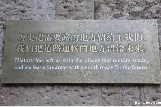 这里是学校寄语全校师生员工和广大校友的话语:“历史把需要路的地方留给了我们,我们把道路畅通的地方留给未来”。这句话表达了全体重庆交大师生对筑路英雄的崇高敬意,对美好未来的无限期许。