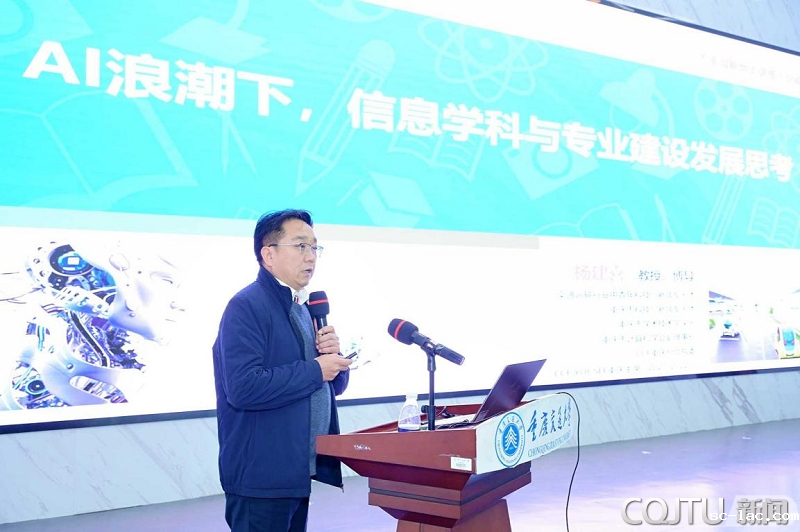 大会第二阶段为建设发展大会。信息学院院长杨建喜首先为大家带来了题为《AI浪潮下,信息学科与专业发展思考分享》的报告,深入探讨了AI技术对信息学科与专业发展的影响。