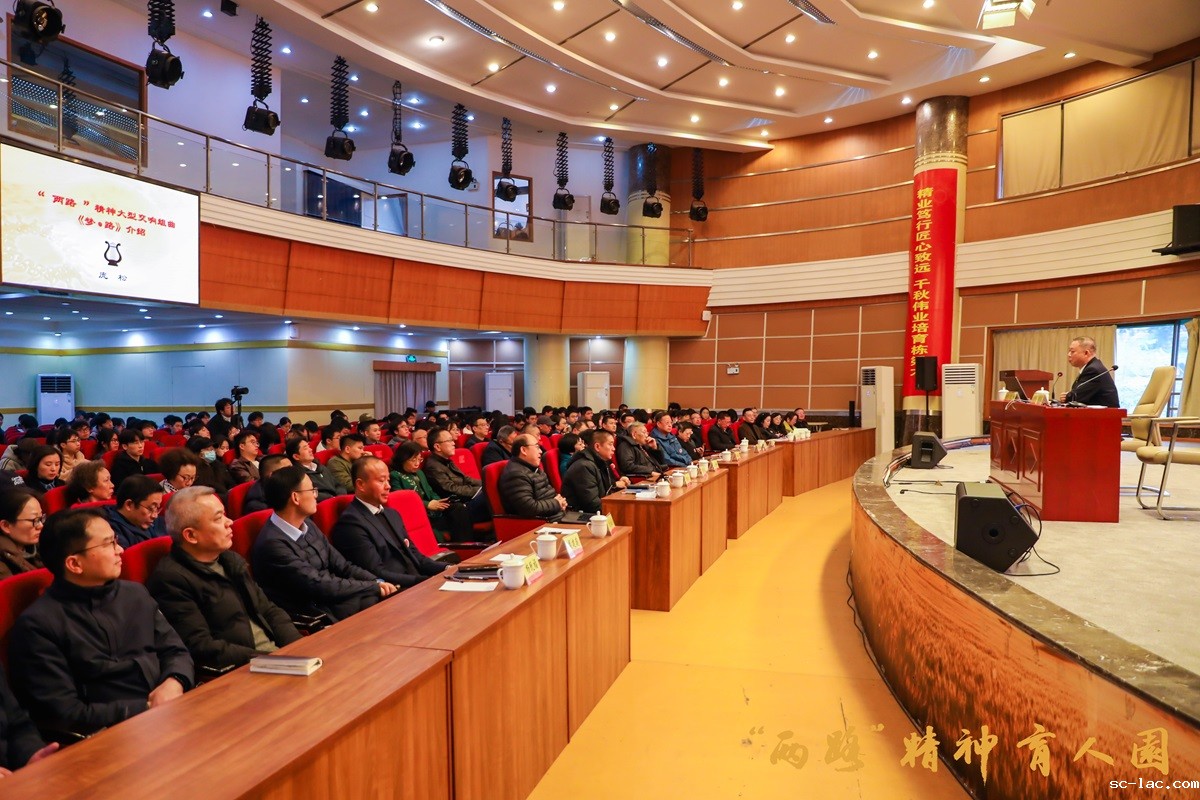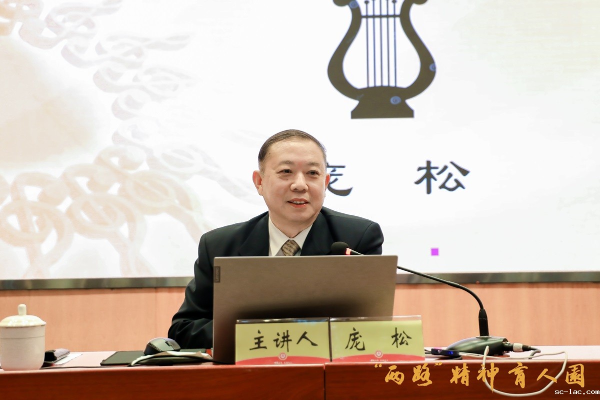 《梦·路》交织乐章间,匠心独运话桑田。庞松从音乐采风、创作录制到后期制作,多维度介绍了“两路”精神大型交响主曲《梦·路》的创作过程。讲座现场,庞松司长播放了《梦·路》的部分乐章,结合音乐解说乐章背后的故事和寓意。庞松司长介绍到,为更好地用音乐传承弘扬“两路”精神,制作团队深入西藏、四川、青海等地,拜访了数十位民族民间器乐演奏、声乐演唱、藏戏表演艺术家和国家级非物质文化遗产传承人,详尽采集藏族风格音乐素材并融入到创作中,历时三年完成。这部由著名青年作曲家方岽清精心打造的作品,用艺术的形式讲述了在党的领导下,建设和养护川、青藏公路在人类筑路史上创造的奇迹。这是一次对历史的深情致敬,更是一场跨越时空的艺术对话。庞松强调,传承和发扬“两路”精神,不仅要体现在日常宣传中,更要通过多种形式的文化活动来加深社会公众的理解与认同。