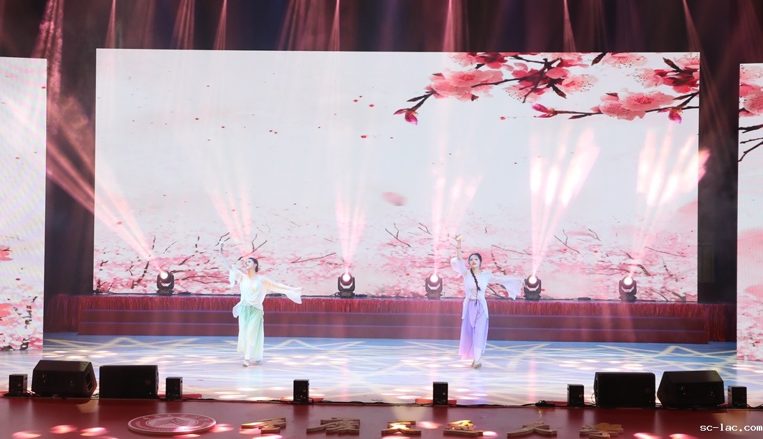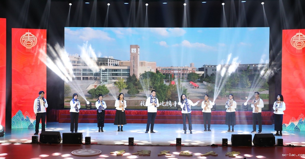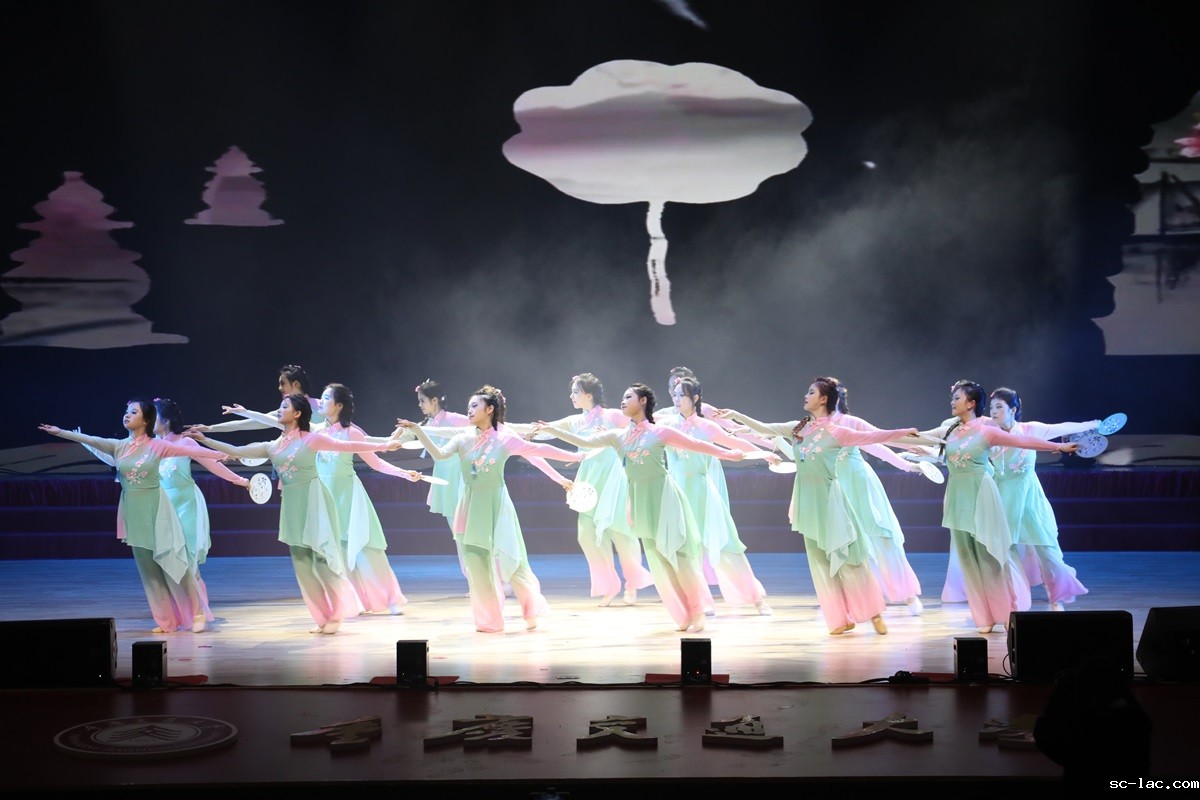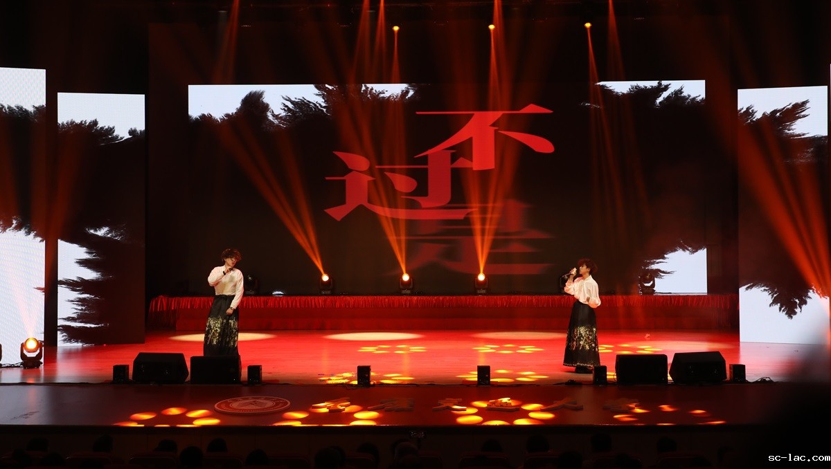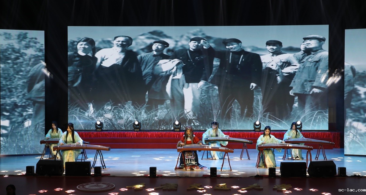 古筝表演“两路”、歌伴舞“有那么一个地方”表达着对学校建校及艰辛发展的赞美。