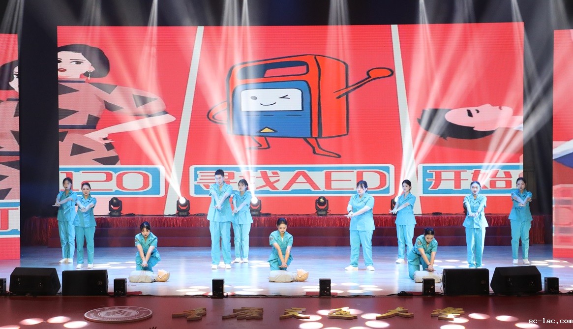 舞台上,“心肺复苏”这一特别的舞蹈让观众在轻松愉快的氛围中学习着重要的急救技能。