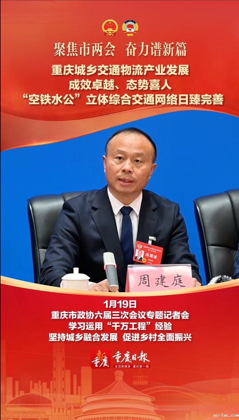 【周建庭】 15:07一、我市城乡交通物流产业发展成效卓越、态势喜人 一是“空铁水公”立体综合交通网络日臻完善。多式联运网络方面,全市机场旅客吞吐量超4900万人次,铁路运营里程超2800公里,在建高铁项目数量全国第一,长江5000吨级船舶满载通航,高速公路里程突破4500公里,实现机场100公里半径覆盖人口率95%、80%区县通铁路、75%区县通航运、100%区县通高速,为城乡物流,特别是农产品外运打通了通道。重点基础设施方面,桥梁总数超两万座,创造17项桥梁世界纪录,持续推进渝万高铁、重庆东站等重点建设项目,建成长江上游地区最大的集装箱集并港、三峡旅游集散地,促进城乡双向融合。城乡交通方面,轨道里程突破500公里,开通璧铜线、江跳线等市郊铁路,创建全国城乡交通一体化示范县3个,建成“四好农村公路”网络,乡镇村通客车率100%,农村到县城出行平均缩短至2小时以内。 |