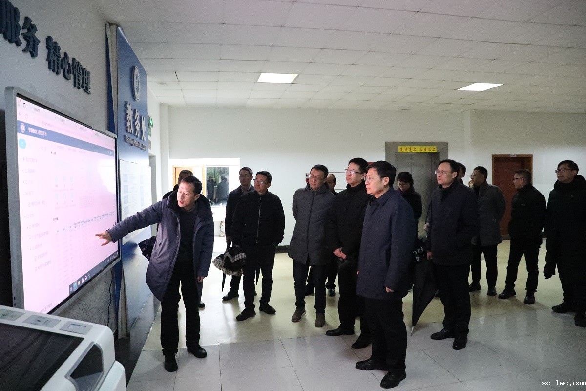 随后,赖远明一行前往第二教学楼,教务处处长郑丹就本科生课程安排、智慧教育大数据平台建设及实时课堂监测等情况进行了汇报,赖远明表示要持续深入运用最新教育技术手段,提升课程教学质量,积极探索智慧教育的新模式、新方法,不断推动教育教学的创新与发展,努力为师生打造更加优质、便捷、高效的教学与学习环境。