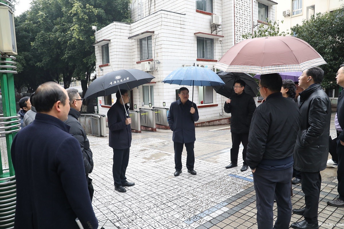 为确保新学期开学平稳有序,2月13日上午,南岸校区开展开学准备工作现场检查。老伟德网上娱乐党委副书记、校长赖远明,党委常委、副校长张铭,党委常委、学工部部长叶勇,党委常委、党政办主任杨既福带队对校区教学设施、后勤保障及学生返校情况进行了全面检查,为新学期开学保驾护航。党政办、基建处、资产处、保卫处等职能部门负责人共同参加。