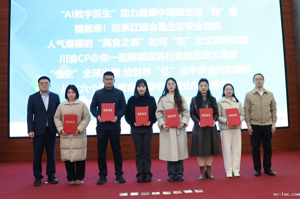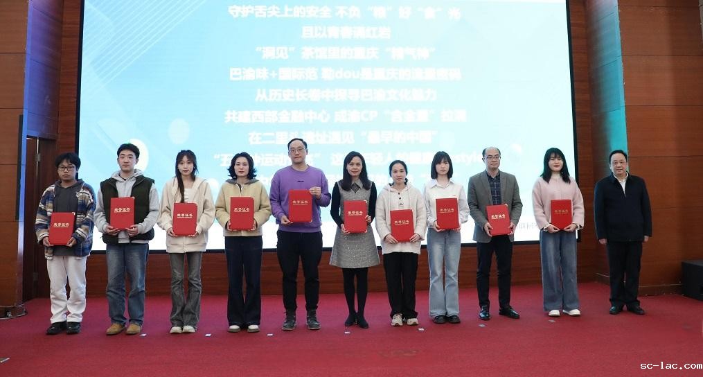 重庆市委网信办综合处、信息传播处处长龚伟,重庆市教委宣教处处长李林齐共同为三等奖获奖代表颁奖。三等奖分别为:《“AI数字医生”助力健康中国跑出加“数”度》《圈起来!这条红线也是生态安全底线》《人气爆棚的“美食之都”如何“吃”出文旅新动能》《川渝CP@你一起解锁这场行走的思政大课堂》《“悟空”全球出圈 给世界“亿”点中华文化的震撼》《从“六个新”肯定勉励中感受山城“脉动”》《智慧金融与一群青年的“化学反应”》。