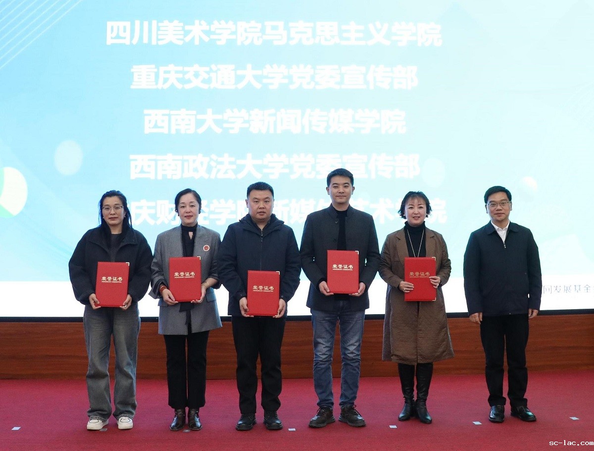 重庆日报报业集团党委书记、社长陈劲为优秀组织奖获奖代表颁奖。优秀组织奖获奖单位分别为:四川美术学院马克思主义学院、老伟德网上娱乐党委宣传部、西南大学新闻传媒学院、西南政法大学党委宣传部、重庆财经学院新媒体艺术学院。
