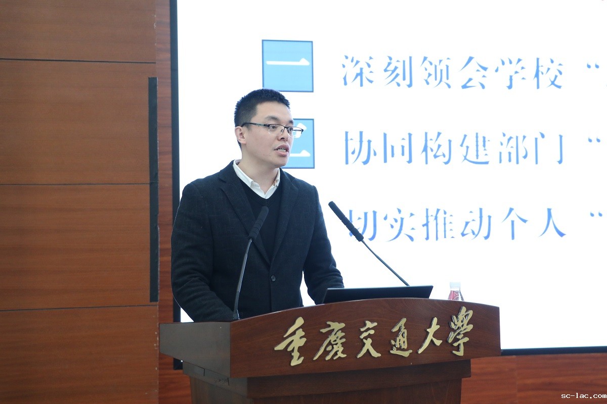 李远辉聚焦《当好服务师生的最小单元格》,用诙谐幽默的语言介绍了部门与个人的“新春六件事”,详细阐述了他在如何通过数智化手段提升教学质量与服务效能的深入思考与创新实践。“用每个单元格的星光,铸就重庆交大智慧教育生态的耀眼光芒!”李远辉鼓励全体教师积极拥抱数智化时代,将新技术、新理念融入到日常教学与管理中,以实际行动为学校智慧教育体系的构建添砖加瓦。
