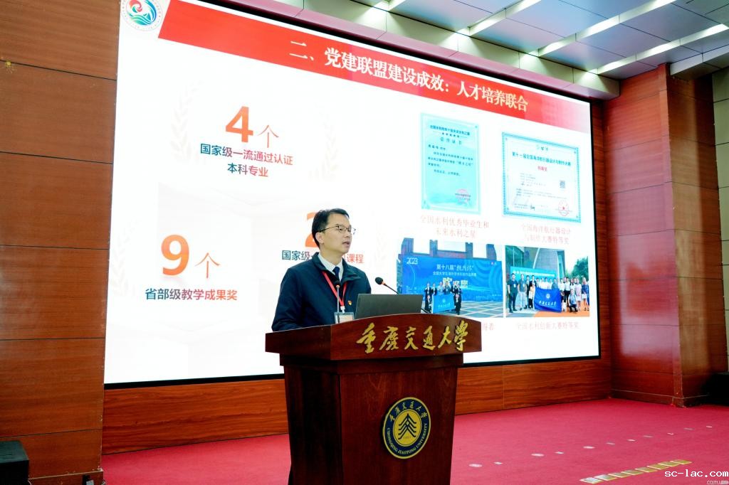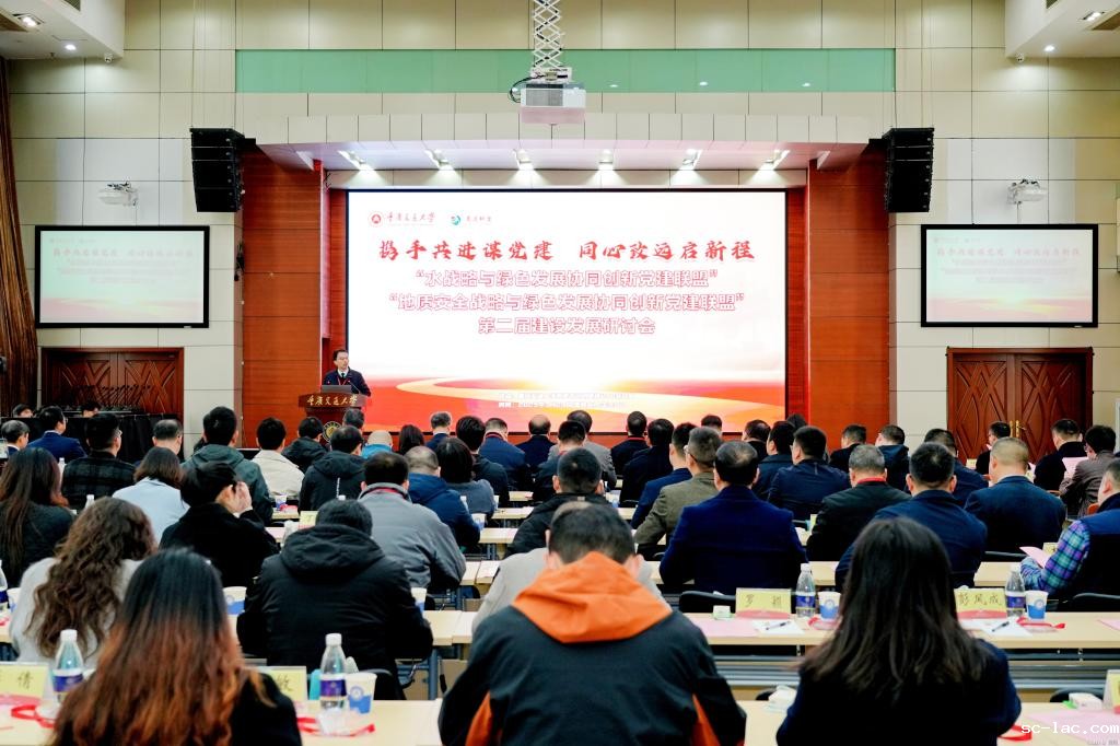 河海学院党委书记叶四桥向各联盟单位和与会嘉宾汇报“水战略与绿色发展协同创新党建联盟”和“地质安全战略与绿色发展协同创新党建联盟”的建设发展情况。党建联盟组建情况:“朋友圈”“战友群”进一步扩大,成员单位已经从2022年成立时的40家、2023年第一届研讨会时的61家,扩大到目前的84家,联盟的影响力持续提升,服务经济社会发展的效能不断增强。党建联盟建设成效:联盟成立近3年来,通过党组织联建、党建活动联办、人才培养联合、科技攻关联动、服务发展联抓等路径,携手举办学习教育和党建活动百余场次,覆盖5000多名师生和联盟单位人员;共建“联培基地”100余个,共同为行业培养了2200余名本硕博高素质人才;联合承担国家重点研发、重大工程科研项目83项,科研经费累计2.63亿元;共建特色服务品牌和项目,开展各类服务活动100多场次,参与人次超过4000次,服务数万居民,有效保障地方经济社会发展;相关做法及成效受到中央电视台、全国高校思想政治工作网、新华网、重庆日报、华龙网等主流媒体报道超过600次。党建联盟未来发展思路:未来,联盟将采取“同心同向”战略,以高质量党建引领事业高质量发展为核心,以重大项目为抓手,加强各单位发展战略协同,持续增强联盟服务国家、行业和地方发展的效能。加强资源共享,充分发挥联盟资源对成员单位事业发展的支撑力。