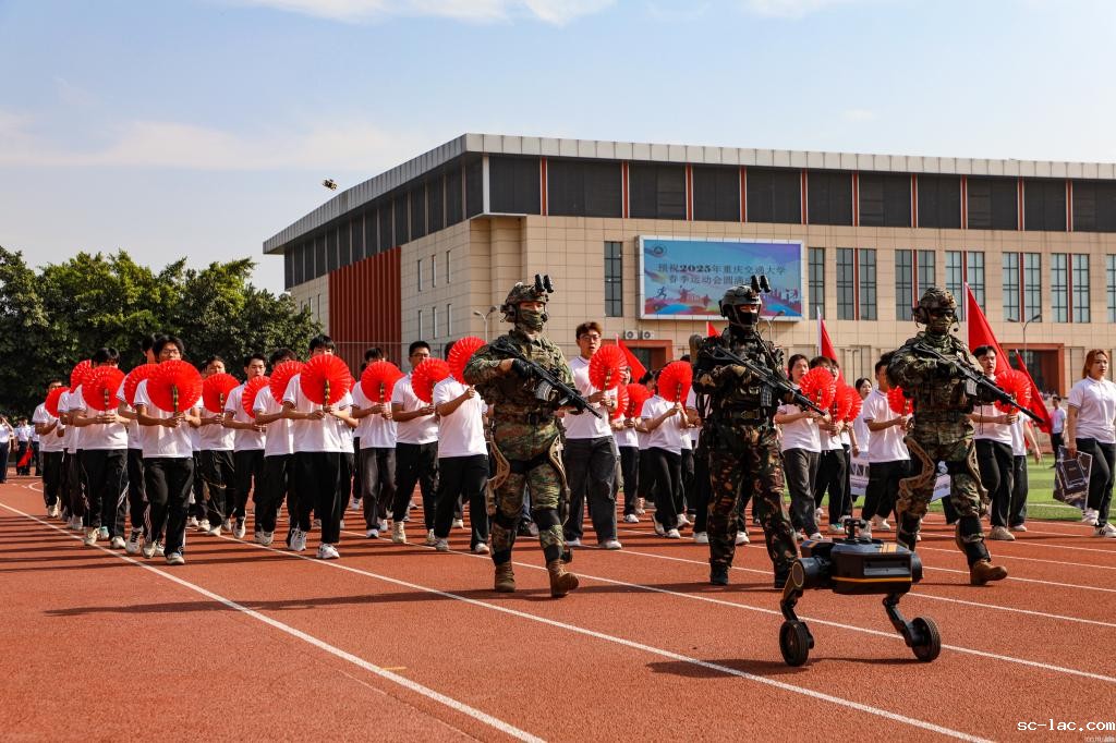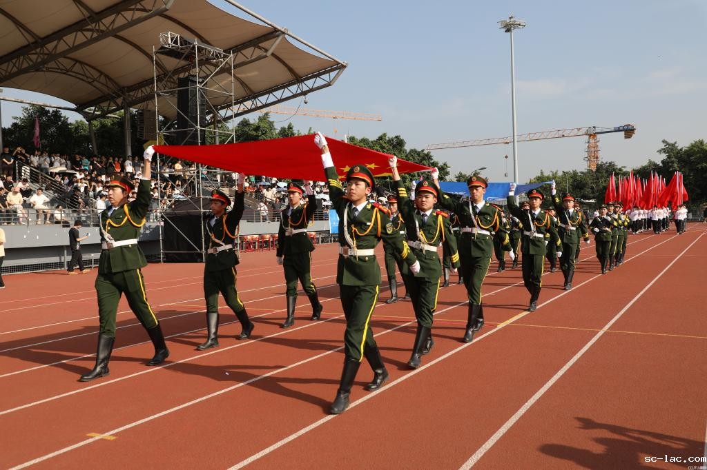 “炽热的红色是成功象征,耀眼的黄色是希望的代表!”伴随着激昂的运动员进行曲,国旗护卫队队员们眼神坚毅、跨步向前。鲜艳夺目的校旗,更承载着建设“两路”波澜壮阔的历史,见证着筑路先辈们不畏艰难、勇克险阻的坚毅品格。