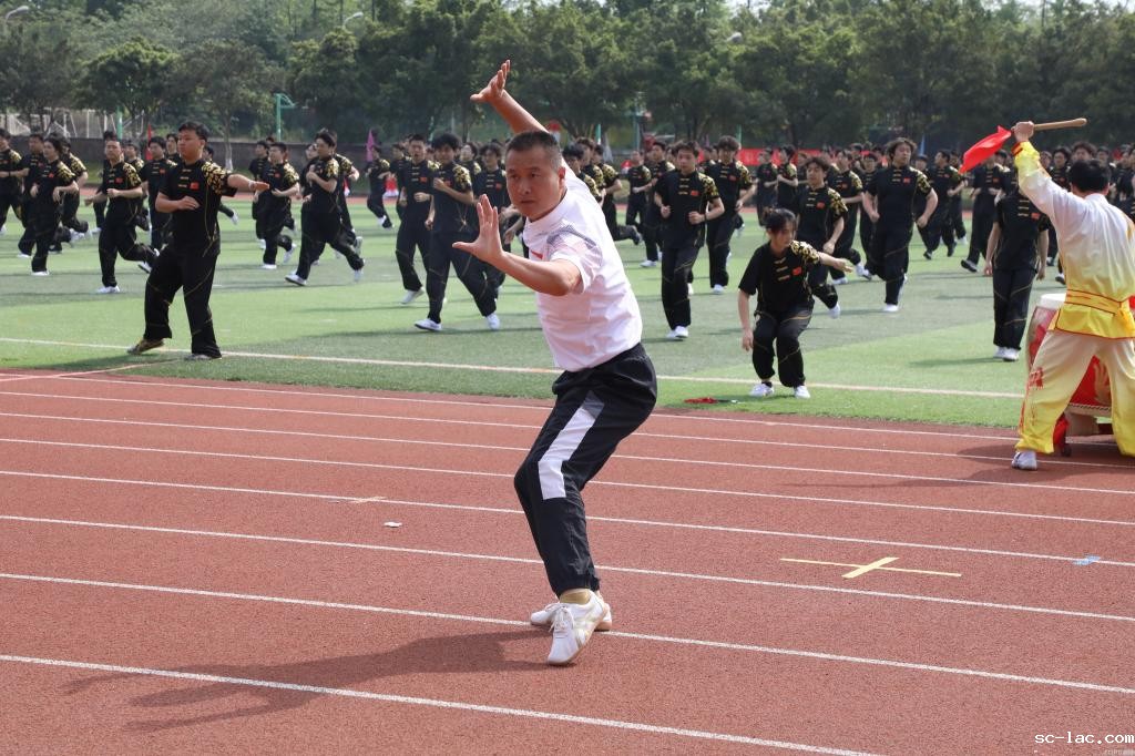 随后,团体操与传统武术表演惊艳亮相,将现场氛围推向高潮。常欢、许嘉希两位老师带领的600名交大学子以团体操《鼓韵扇魄》尽情绽放了青春活力与团队协作精神。全国武术冠军教练贾奇侠老师指导的365名学生,以一场气势恢宏的大型武术表演《中华武术》,展现了传统武术的博大精深。