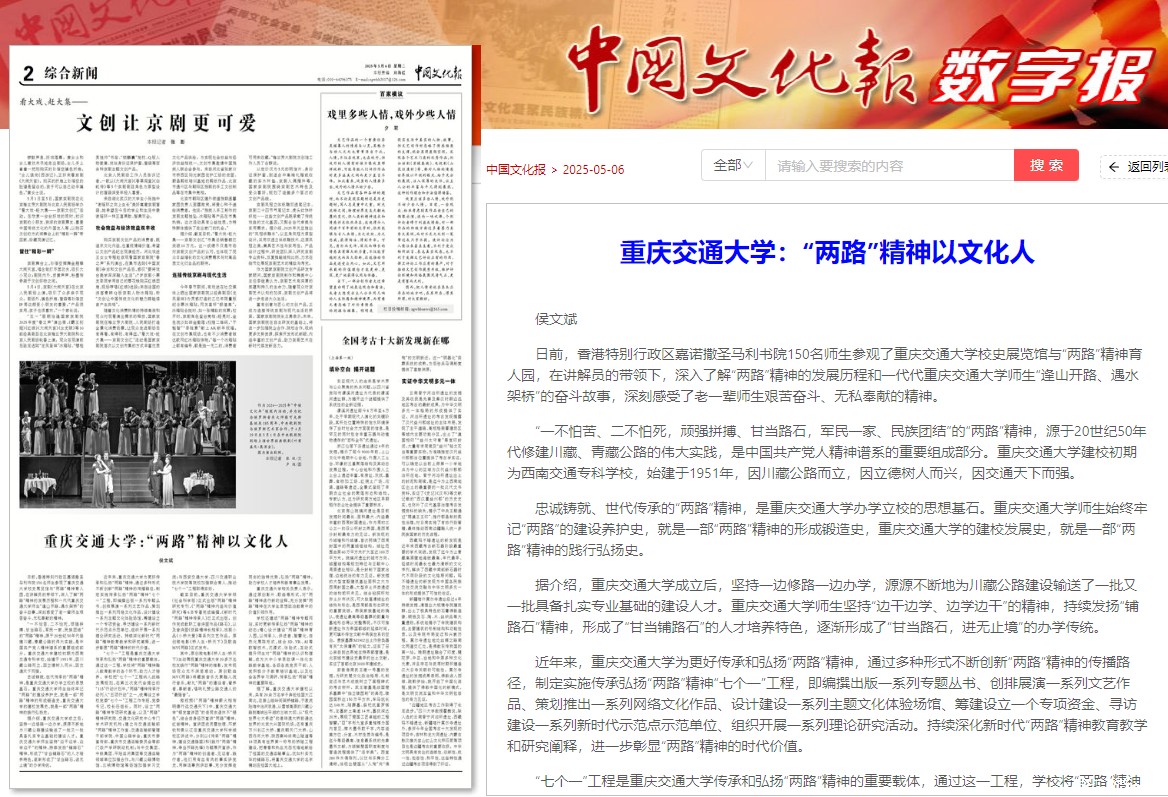 学校还建成“两路”精神专题网站,实时更新传承弘扬“两路”精神的动态;精心设计建设“两路”精神育人园,以传承人、讲述者、智慧化、自然化展陈形式,结合3D、VR、AI等数智技术,沉浸式、体验式、互动式提升师生对“两路”精神的认识和理解,成为大中小学思政课一体化实践教学基地,各级各类党员干部、入党积极分子教育培训基地,以及社会各界学习调研、传承弘扬“两路”精神的重要阵地。