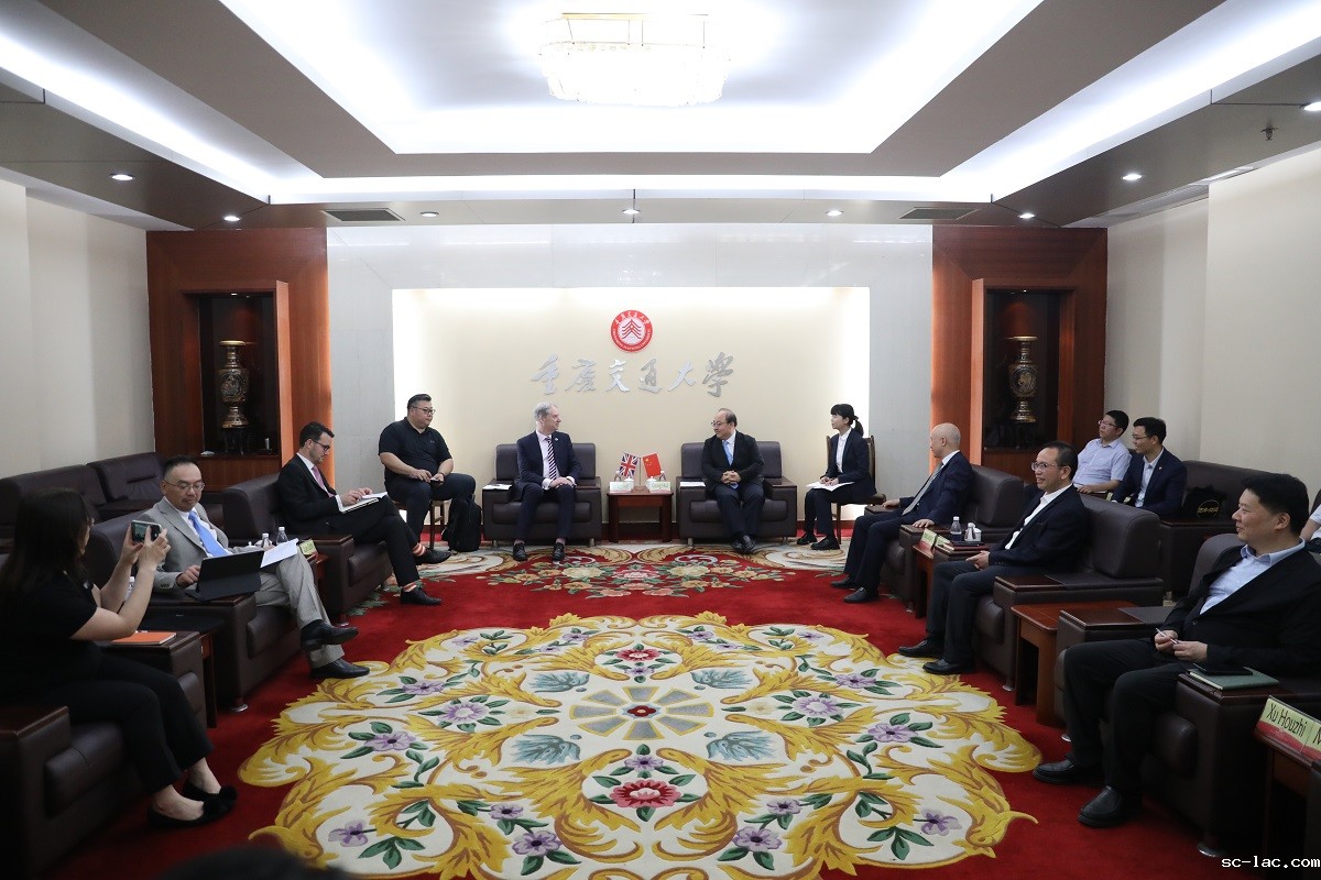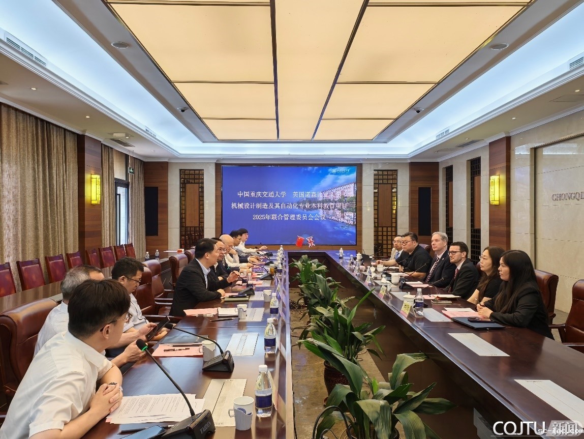 会见后,机械设计制造及其自动化专业本科教育项目联合管理委员会会议在明德楼国际会议室召开。John Woodward副校长与学校黄承锋副校长、国际处、教务处、发规处、财务处、机电学院、建规学院、艺术设计学院等相关负责人针对合作办学项目深化升级继续座谈交流,并达成了广泛的共识。会议由学校国际处副处长徐厚智主持。