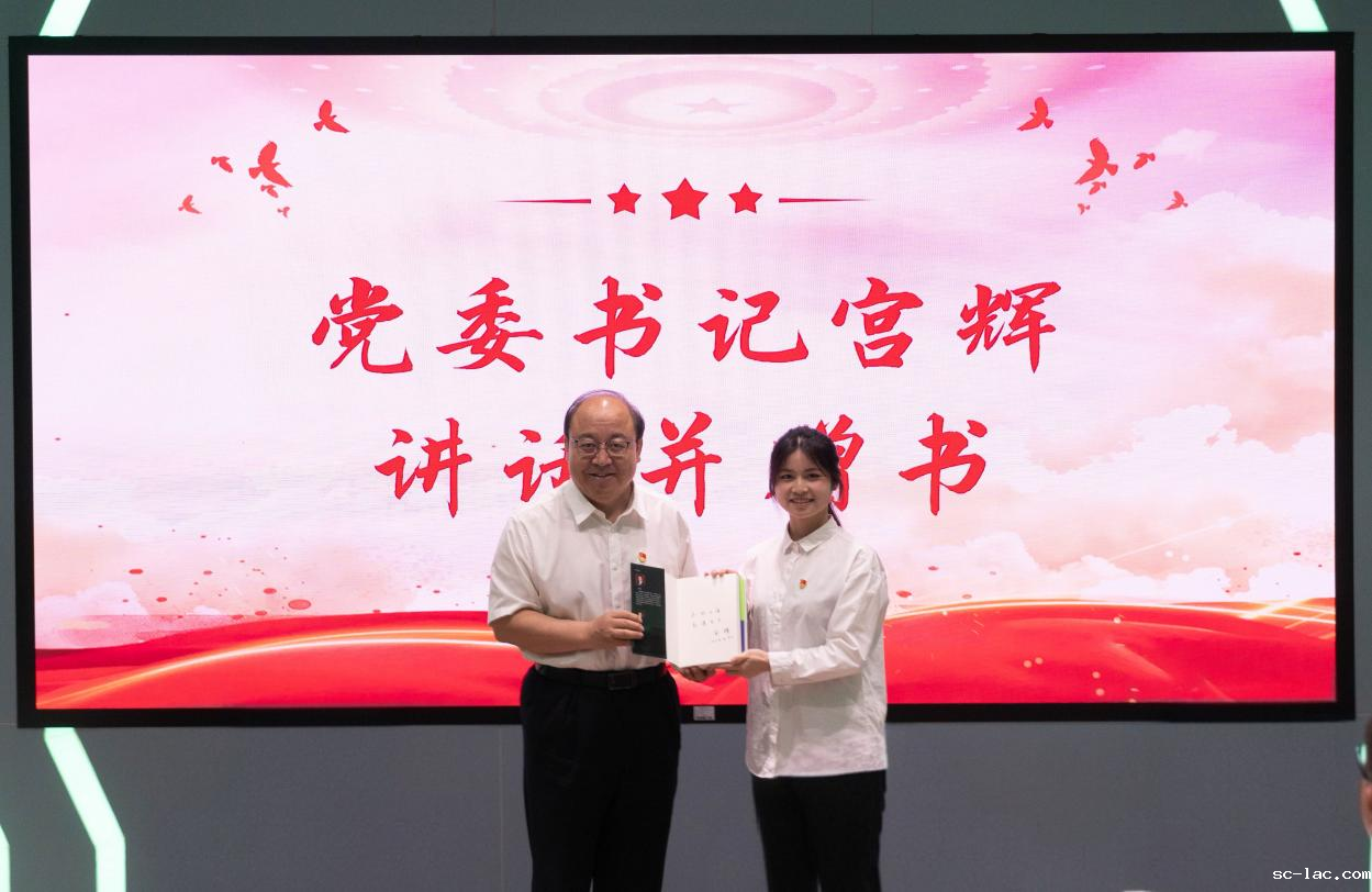 活动最后,校党委书记宫辉向支部赠书,并寄语全场党员:“志图山海,交通天下”。从“两路”精神到人工智能,从革命先辈到科技先锋,交大青年始终与祖国同行、与时代共进。