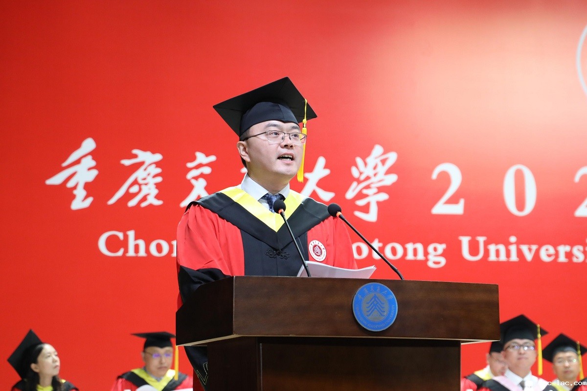 “重庆交大,是我梦想起航的地方!看到母校发展日新月异,看到新一代交大学子意气风发,那份源于内心深处的归属感与自豪感油然而生!”优秀校友代表、桥梁与隧道工程专业硕2011级毕业生,重庆大学教授、“双一流”建设办副主任,国家高层次青年人才、2025年度新时代青年先锋奖获得者陈增顺动情回顾了母校学习生活点滴,“聚是满园黄葛,散是缤纷四季!”陈增顺勉励同学们胸怀“交通天下”之志、勇担时代使命,坚守“铺路石”精神、铸就坚实根基,锤炼“明德致远”品德、行稳人生之路,常怀感恩之心、心系母校发展,在各自领域大展宏图,创造出无愧自己、无愧母校、无愧时代的辉煌业绩。