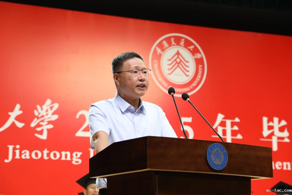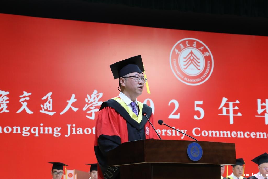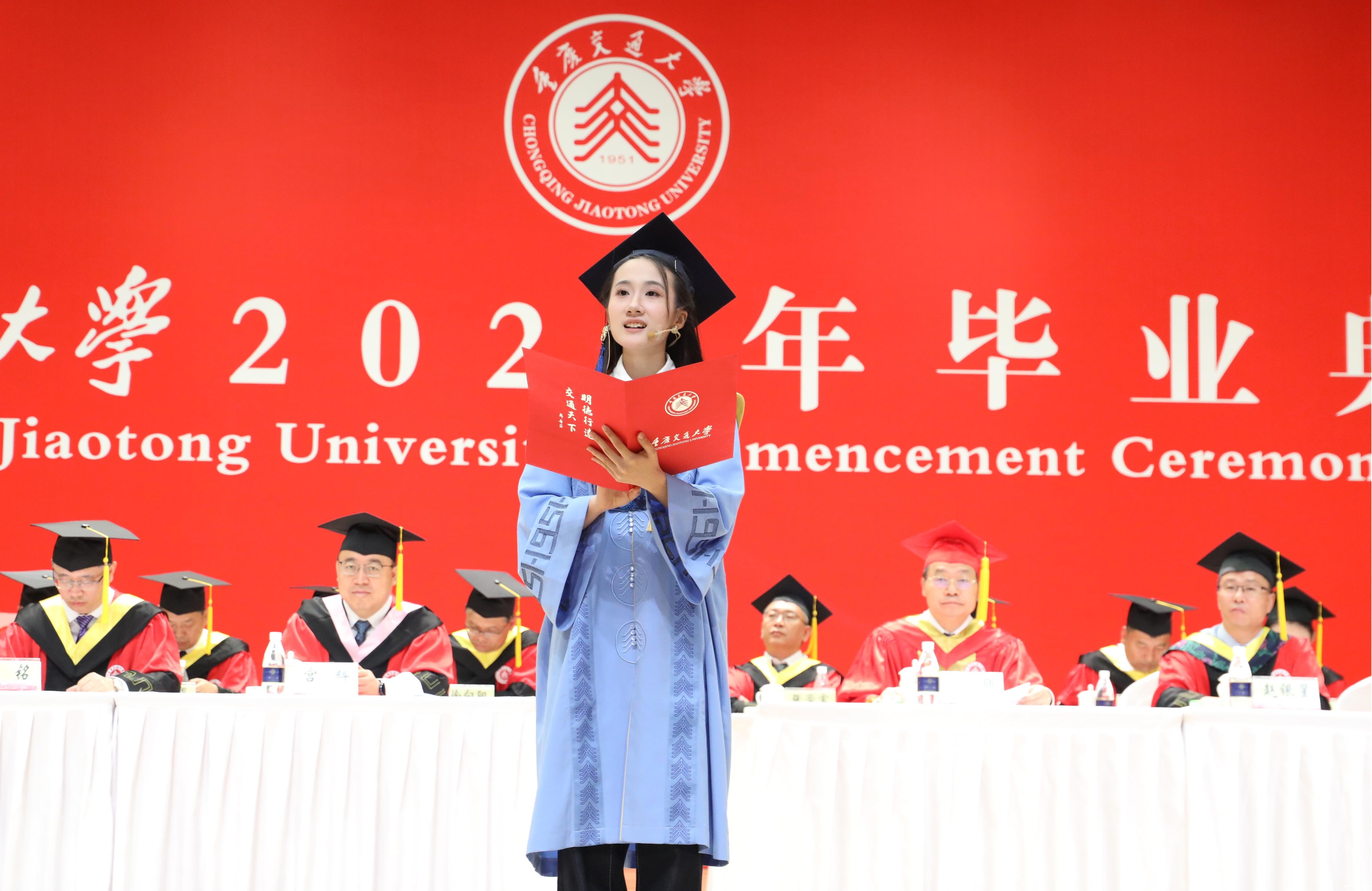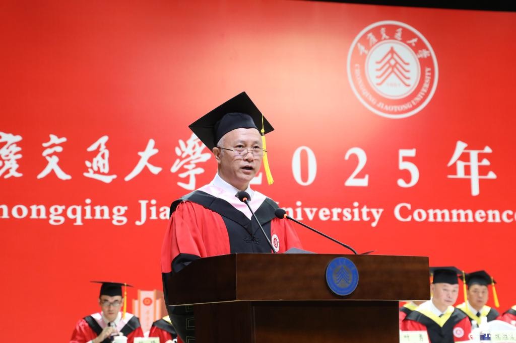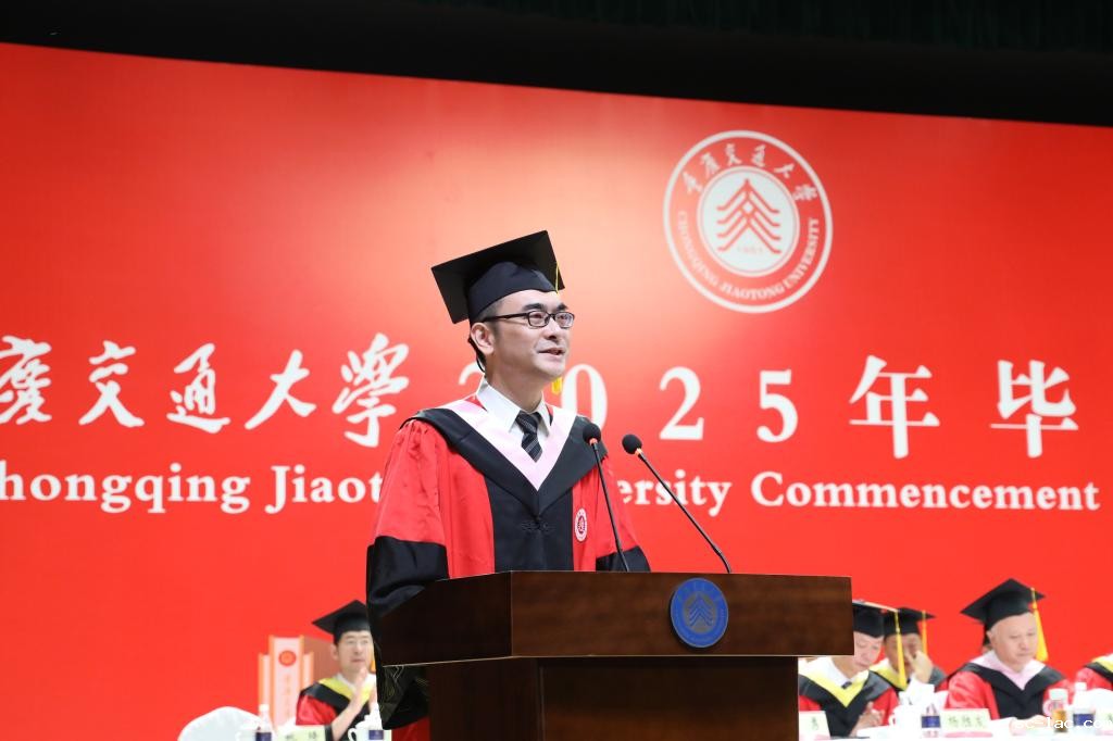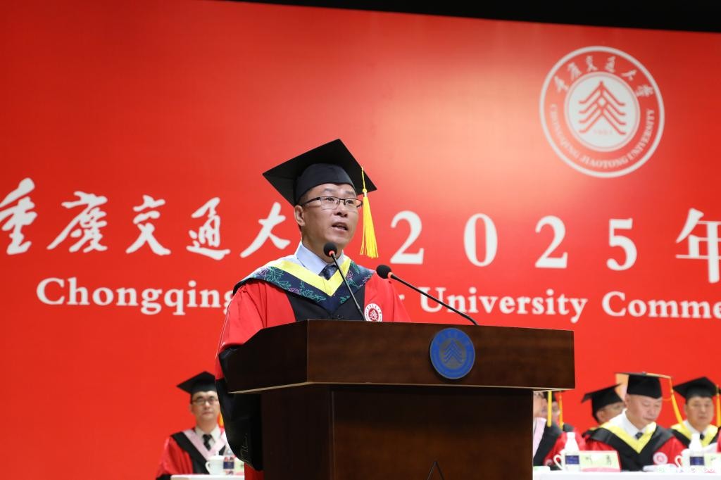 “成功的道路不止一条,历经‘明德行远,交通天下’校训精神的洗礼,必将成为你们奔赴星辰大海的底气!”教师代表、经济与管理学院姚琦教授用三句话为毕业生的行囊增添助力:永葆“逢山开路、遇水架桥”特质,做心怀家国的筑梦者,将个人理想融入交通强国、民族复兴的宏伟征程,在祖国最需要的地方建功立业,争做交通运输事业发展的顶梁柱和主心骨;践行“空谈误国,实干兴邦”传统,做知行合一的实干家,在田野调查中读懂中国,在跨界碰撞中激发创新,像红砖楼旁的“爬山虎”一样向下扎根、向上生长,用“敢闯勇创”突破边界,以创新赋能中国式现代化建设;传承“甘当路石,进无止境”情怀,做饱含温度的交通人,以更为从容开放的心态迎接风浪挑战,以人文之光照亮科技之路,让每一条路都承载文明的温度。