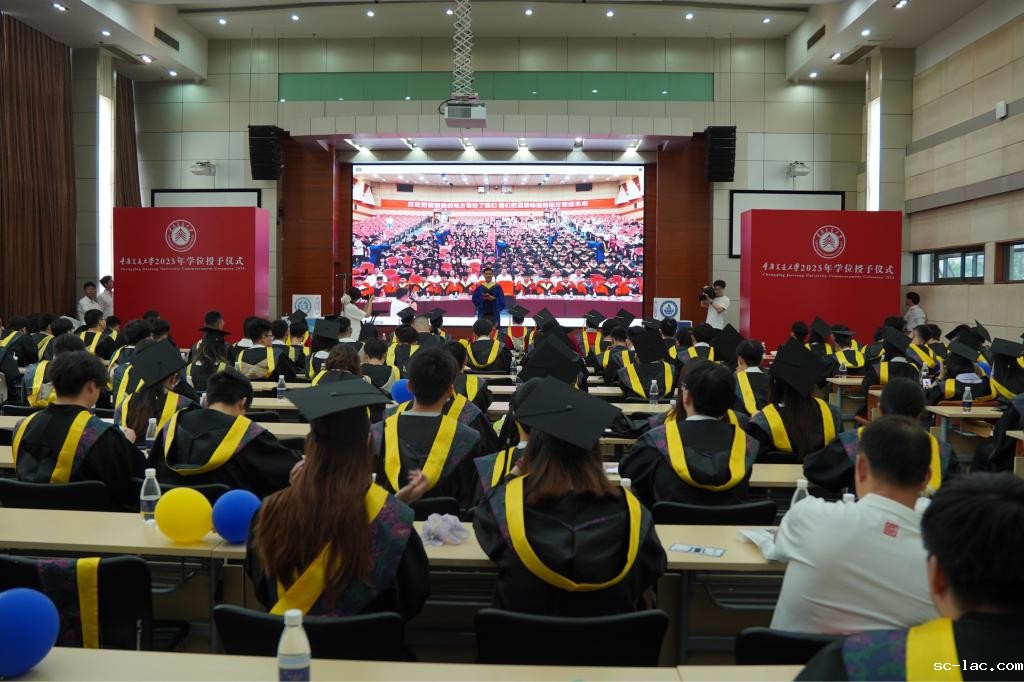 学校特别在南岸校区羽毛球馆、二教四楼多功能厅、一教大数据中心、明德楼408会议室以及科学城校区学生活动中心学术报告厅设置了5个分会场,与南岸校区学术交流中心同步进行毕业典礼暨学位授予仪式,并以数智技术为支撑,实现了各典礼现场场景的实时转换与共享,让每一名毕业生都能相互感受不同会场毕业同学们的激动心情;双校区的交相辉映,为毕业学子们带来了一次来自李子湖畔的温馨“回忆杀”,更为他们送上了一场“隔空共情”别出心裁的典礼呈现。