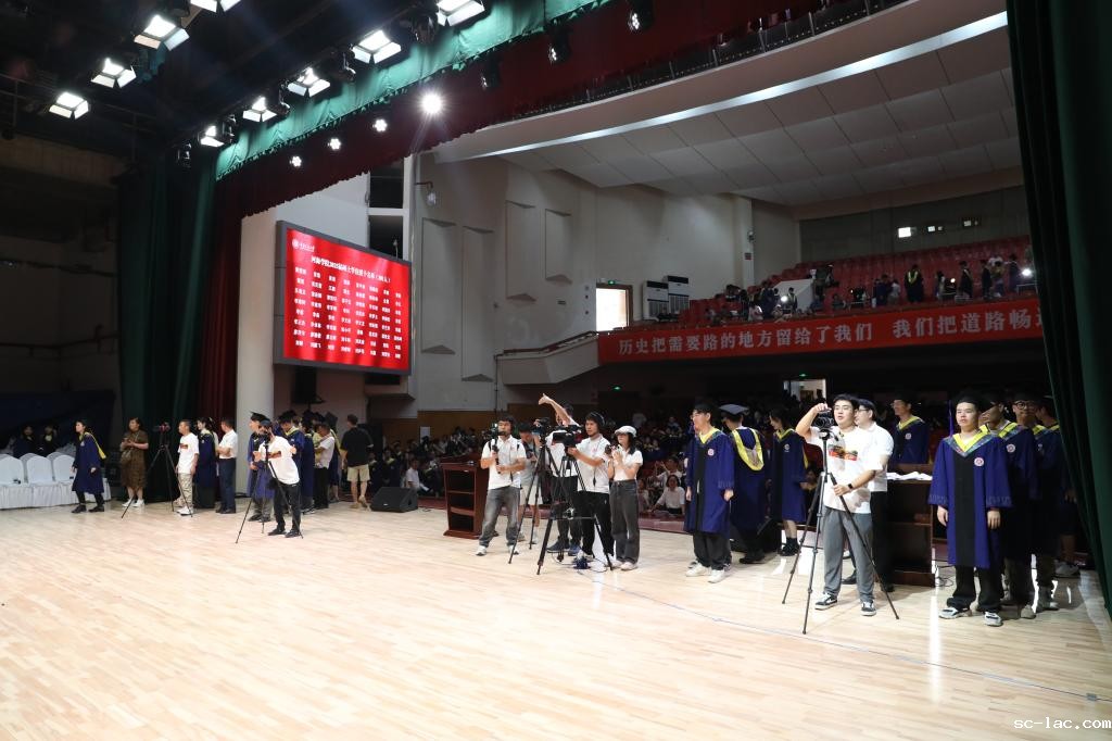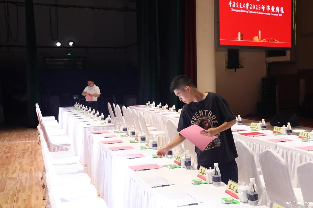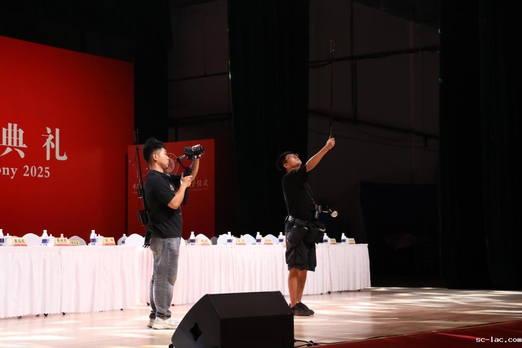 而在聚光灯未曾抵达的角落,另一些身影构成了毕业典礼沉静的基石。工作人员们专注地调整着每一张座椅的间距、认真分发着每一份议程、屏息核对着流程单上每一个名字;还有摄影师们,高高举着设备,捕捉每一个瞬间,汗水与光影交织,记录下这场盛会的每一份感动。他们神情专注的侧脸,汇成另一道风景,是这场青春盛典里看不见的星光。