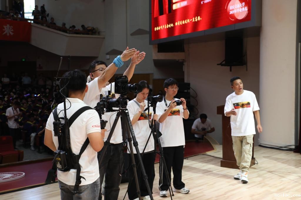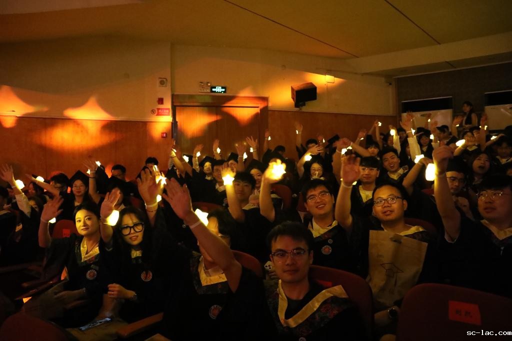 当书记和校长步入会场,气氛瞬时点燃。更令人动容的是,院长们竟高高举起闪烁的灯牌,暖黄的光晕映亮他们亲切的脸庞,随着旋律一同轻轻哼唱。这一刻,威严与温情奇妙融合,严肃的学术殿堂刹那间被无声的暖流浸润——原来守护梦想的人,本身也会发光。