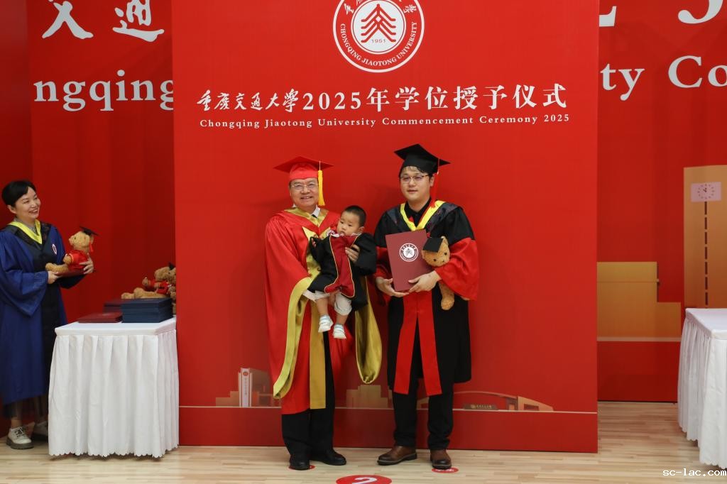书记和校长瞬间被热情的浪潮温柔裹挟。身着学位服的学子们,有的邀请父母亲人一同合影,父母欣慰的泪光,映照出子女成长的足迹,都在这一刻定格成最圆满的“全家福”;有的将鲜红的结婚证书也举到镜头前,分享双喜临门的甜蜜;还有人带着蹒跚学步的孩童,让稚嫩的小手触摸这荣耀的衣袍。更有学子展开精心准备的自制横幅,上面写着俏皮话,为自己的青春画上最独特的注脚,成为合影中最独特的背景。快门声此起彼伏,闪光灯交织如星网,每一帧画面都在无声地呐喊:此情此景,铭心难忘!