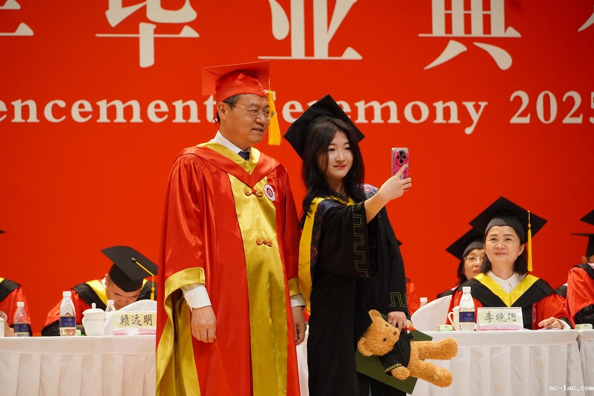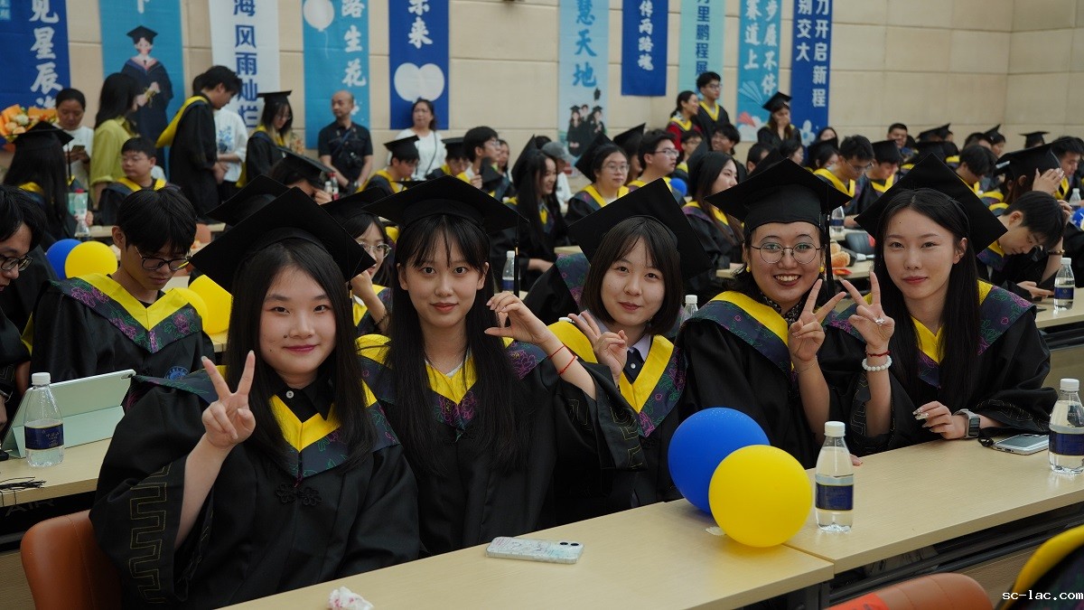 典礼现场,学士帽流苏轻扬,映衬着年轻脸庞上绽放的笑容。它们像盛夏的花朵,在镜头里毫无保留地漾开。那些清澈的眼眸里,盛满了对过往的珍重,对未来的憧憬,无需言语,快乐早已溢出画面,凝固成这个夏天最明媚的注脚。