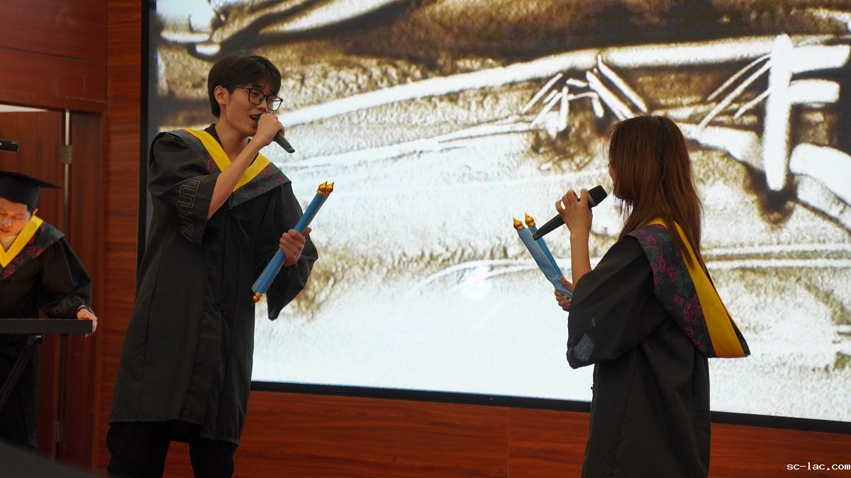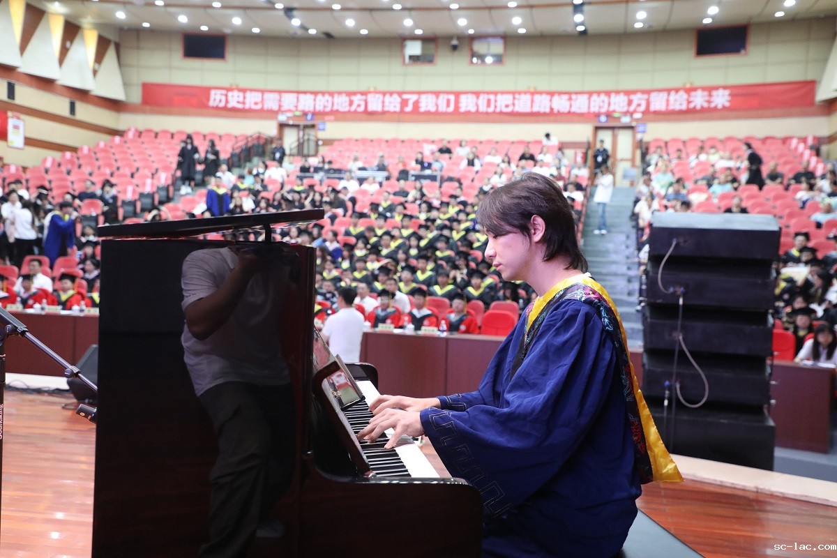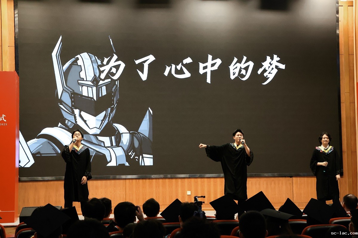 六个会场,六片星光。舞台上,聚光灯下,是你们最后一次以学子身份尽情绽放。歌声悠扬,舞步翩跹,每一个音符都饱含深情,每一个动作都诉说离殇与希冀。最动人的篇章,莫过于院长们的集体献唱。他们的歌声或许并非专业,却字字句句饱蘸深情。那不再是指点江山的铿锵,而是送儿远行的殷殷嘱托与无限期许——祝同学们一路顺风。