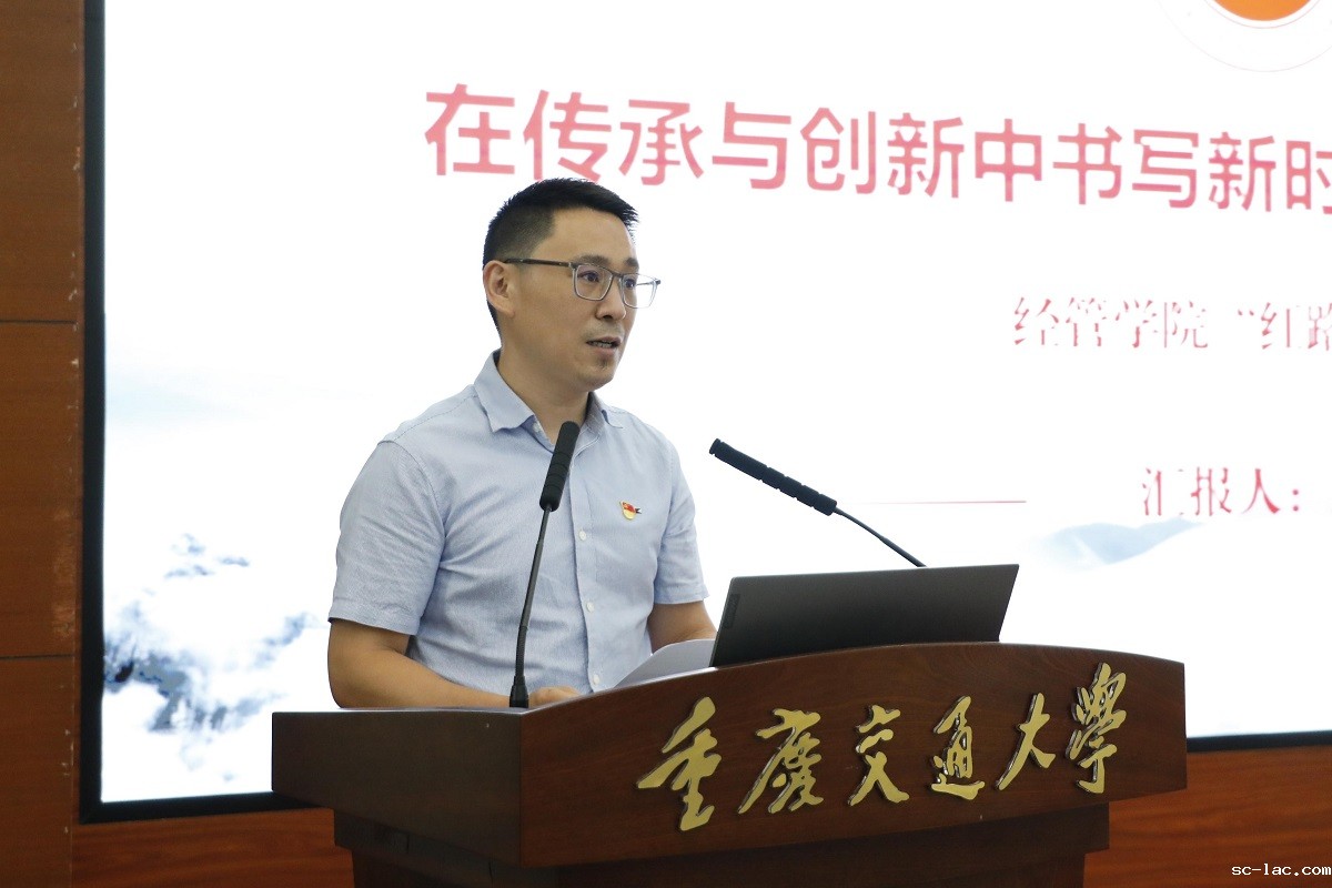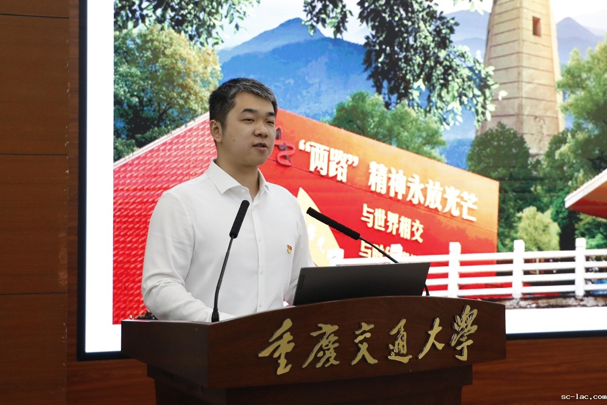 “两路”精神示范团队代表、经管学院教师宋扬回顾了团队从“学生党员接待室”到辐射城乡的“红路”党建品牌建设历程。团队构建四级联动体系,打造沉浸式“红路院坝课堂”,近三年72%毕业生扎根中西部,累计服务超4000小时,生动诠释了“红色基因+全面发展”的育人成效。