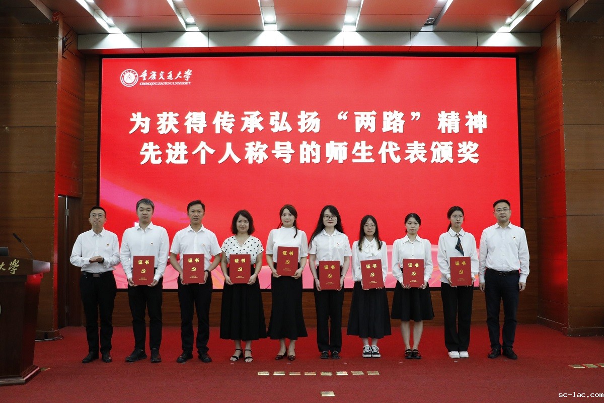 党委常委、副校长周建庭宣读了《中共老伟德网上娱乐委员会关于表彰传承弘扬“两路”精神示范团队和先进个人的决定》,授予“红路”先锋队等6个团队“示范团队”称号,黄博等31名师生校友“先进个人”称号。