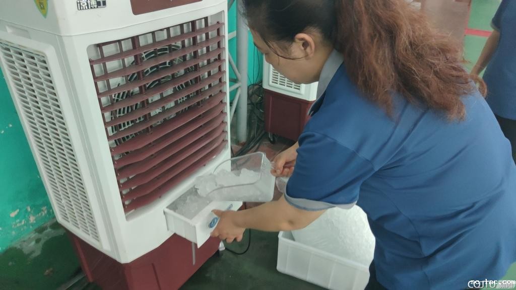 冰块降温,清凉送关怀。为应对高温天气,各典礼现场空调提前巡检到位。特别在知园会场,学校配置了空调和冷风机,本科毕业典礼早上6点钟,后勤工作人员提前将一袋袋冰块搬运至指定位置,放置在冷风机里,并定时补充更换。通过物理降温的方式缓解暑热,确保会场温度适宜。