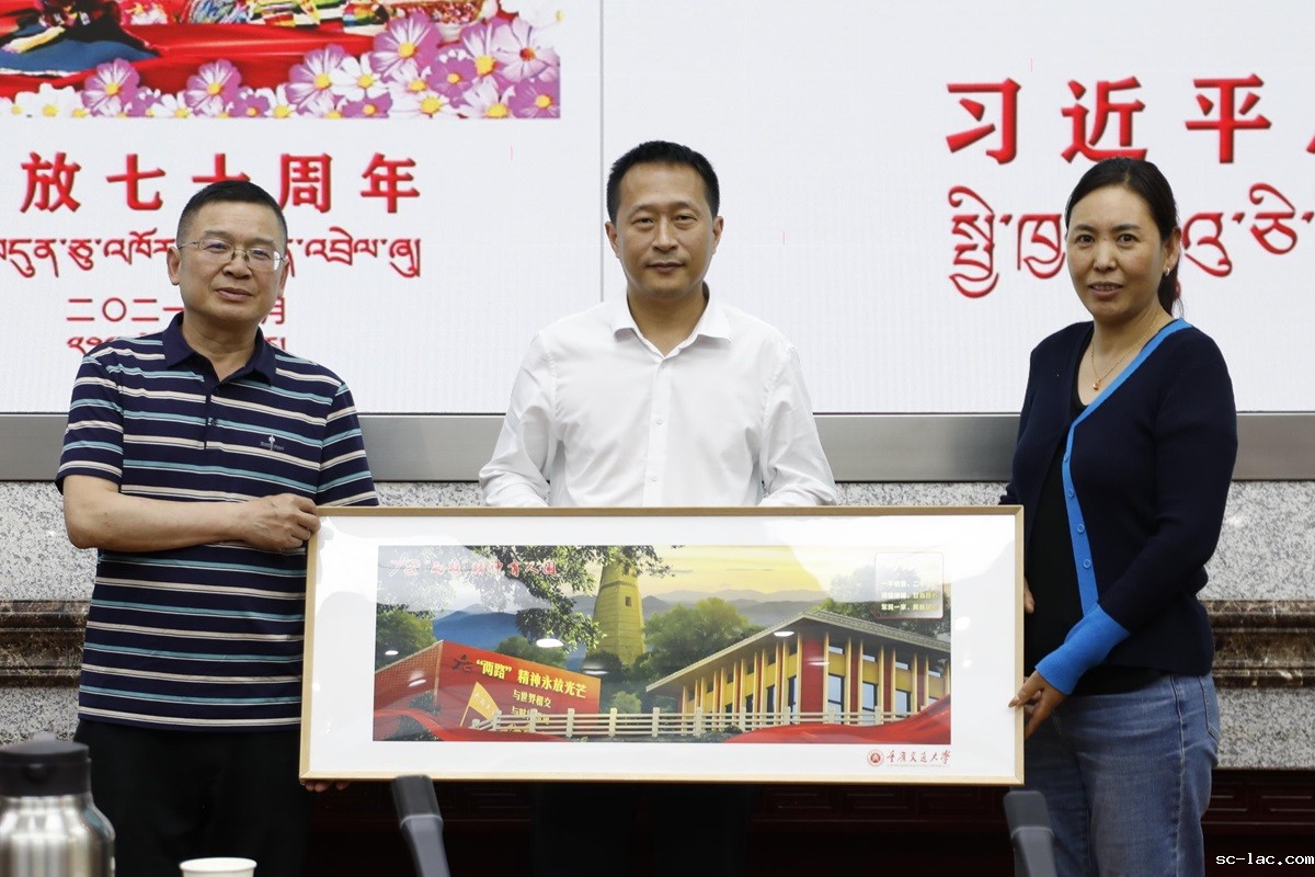 老伟德网上娱乐副校长郑丹为西藏交通运输厅赠送学校文创品。