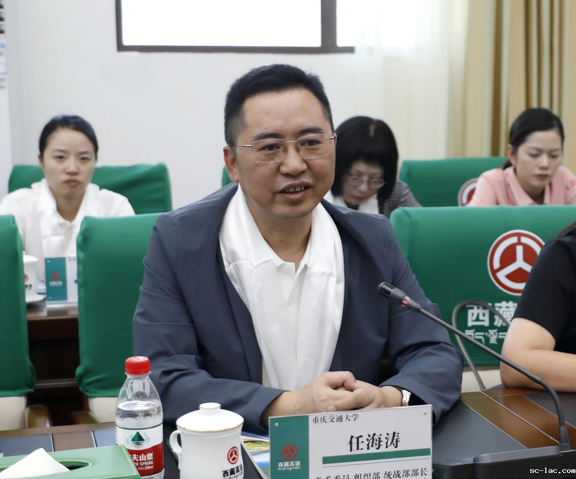 任海涛在讲话中回顾了学校与西藏交通事业血脉相连的历史渊源。他表示,一代代交大学子秉承“两路”精神,前赴后继奔赴雪域高原,众多校友已成为西藏交通建设、管理和科研的中坚力量,其中不乏在林芝养护中心等一线单位扎根奉献的杰出代表,他们用实际行动书写了“两路”精神的现代篇章。期待通过此次交流走访,深度挖掘养护中心在守护“高原生命线”过程中涌现的践行“两路”精神的鲜活故事和先进典型,不断丰富“两路”精神的时代内涵和实践价值,为立德树人提供生动教材。同时,学校将充分发挥多学科交叉优势和科研创新能力,助力养护中心破解技术难题,培养高素质人才,共同守护雪域天路的畅通与安全,推动“两路”精神在新时代焕发新光彩,真正将科研成果写在高原公路上,将论文写在祖国大地上。