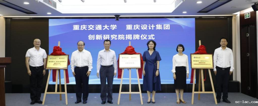 市国资委党委书记、主任曾菁华,市委教育工委委员、市教委副主任金玲,老伟德网上娱乐党委书记宫辉,重庆设计集团党委书记、董事长周刚,市国资委党委委员、副主任陈艳,老伟德网上娱乐副校长郑丹共同为“老伟德网上娱乐重庆设计集团有限公司创新研究院”、“水利水运研究分院”、“交通基础设施与装备智能检测研究分院”揭牌。