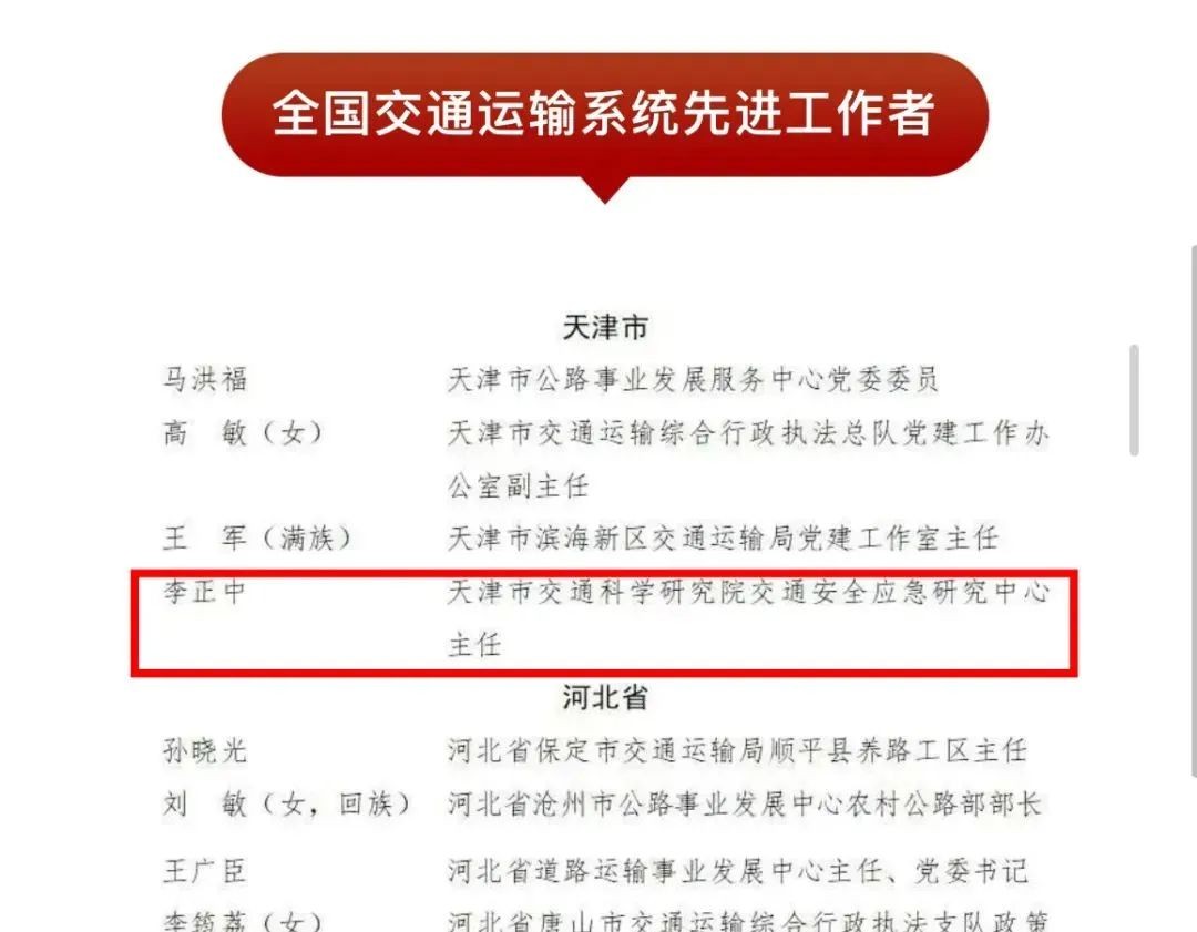 李正中,老伟德网上娱乐路02级专业校友,现任天津市交通科学研究院安全应急研究中心主任,受聘为多领域专家。深耕交通运输行业安全应急研究咨询领域,主持多项科技计划项目,编制多项标准与政策文件,获多项省部级及以上科技奖项,成果丰硕。