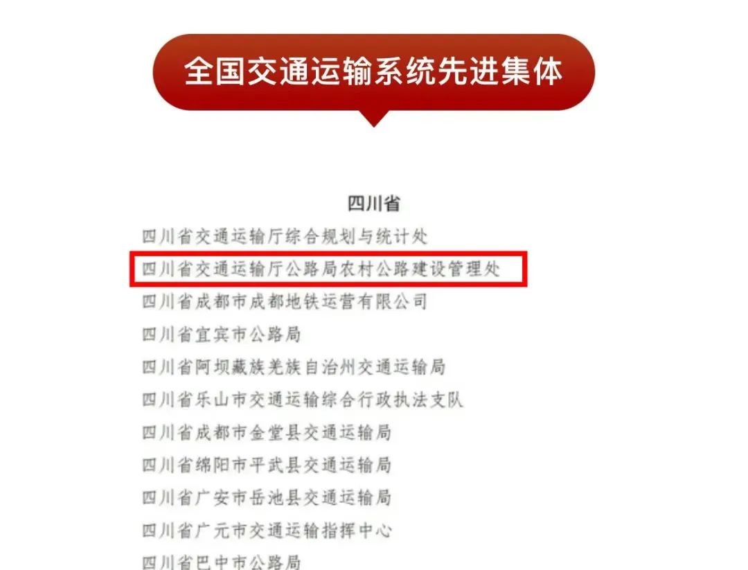 由我校造价05级校友张礼虹担任处长的四川省交通运输厅公路局农村公路建设管理处积极进行新一轮“畅行千万村”农村公路提升行动,聚焦农村交通建设、产业、物流等多个关键领域,全力助推乡村振兴与城乡融合发展,积极投身“四好农村路”建设、交通脱贫攻坚及乡村振兴等工作,在服务国家战略、保障民生中担当作为,成效显著。