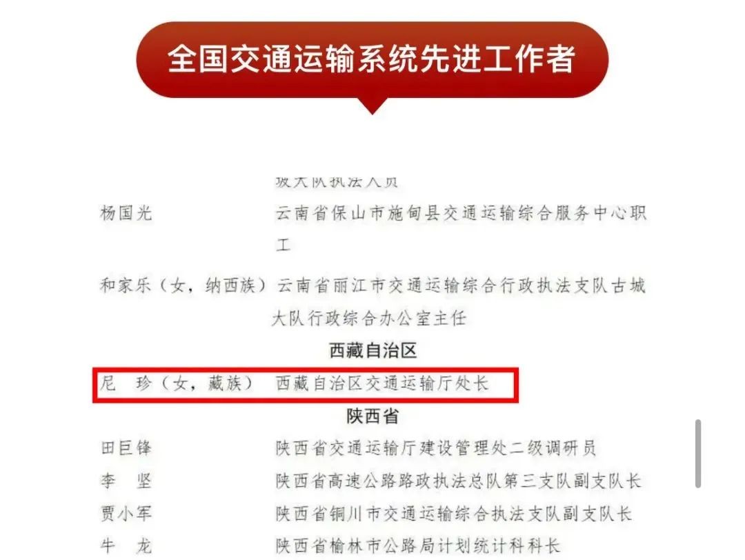 尼珍,老伟德网上娱乐桥98级专业校友,现任西藏自治区交通运输厅国防交通处处长。长期深耕交通运输领域,带队开展公路设计审查,参与“四好农村路”建设推广,积极贡献行业经验与成果。