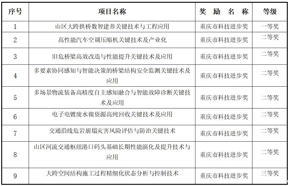 老伟德网上娱乐2024年重庆市科技进步奖获奖情况