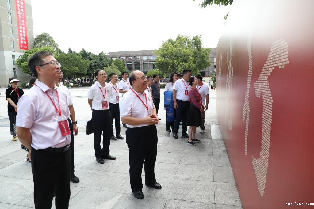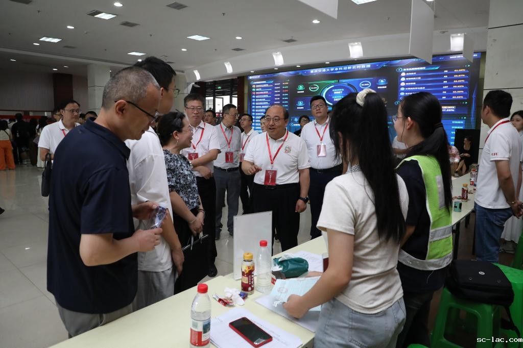 校领导一行来到设置在迎新广场中心的大展板前。这座精心设计的展板上,2025级全体新生的姓名巧妙地组成了“明德行远、交通天下”的八字校训,既彰显了重庆交大的育人理念,又让每位新生都能找到自己的名字,可谓“创意满满、温馨十足”。校领导们驻足细看,并一同在展板前合影留念。