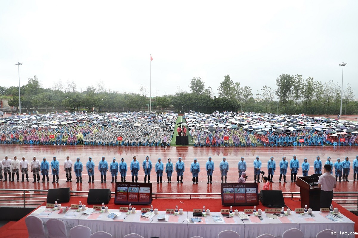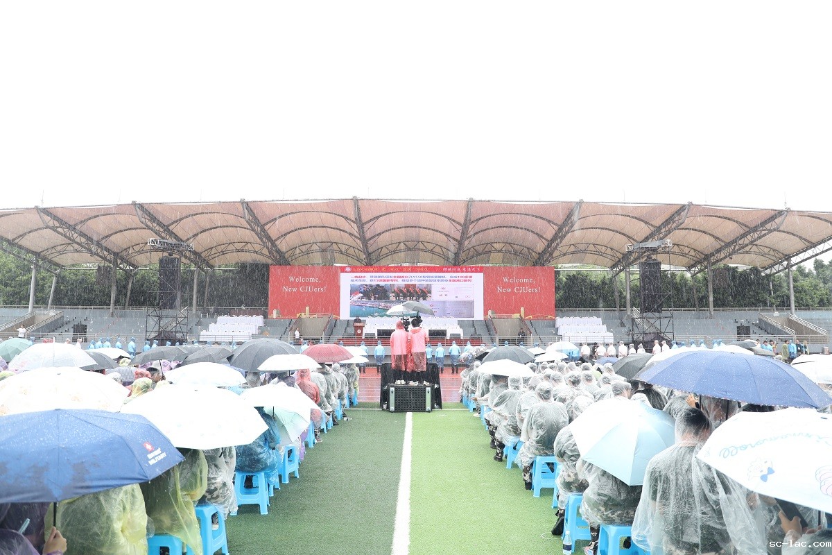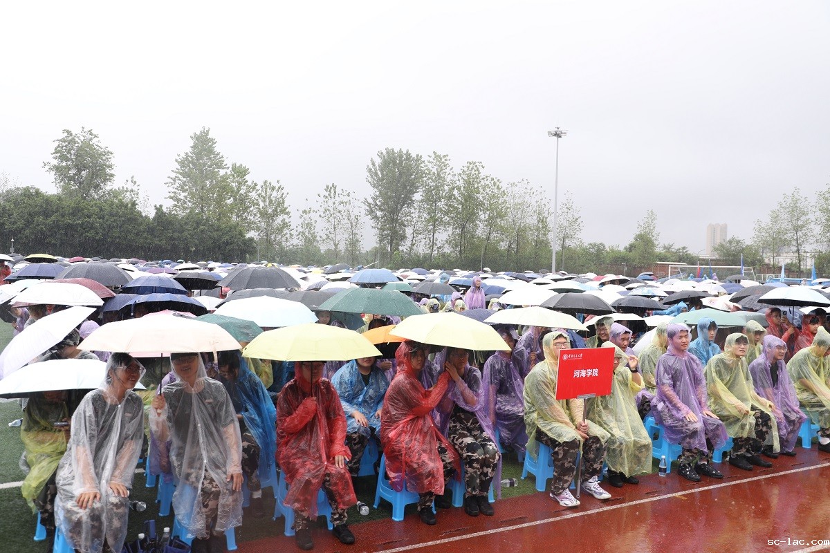 雨水打湿了衣襟,却让现场气氛愈发凝聚。同学们认真聆听,不时响起阵阵掌声;各学院教师代表也坚守操场,与新生一同迎接这场突如其来的“洗礼”。这场雨,不仅见证了一场特别的开学典礼,更成为了一堂生动的“入学第一课”,诠释出“风雨同舟、共赴山海”的寓意。