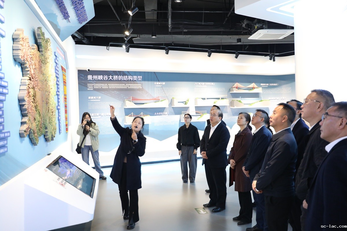 10月24日上午,中心组在坝陵河桥梁科技博物馆开展现场教学。成员们从观景平台远眺被誉为“山区桥梁典范”的坝陵河大桥,听取工作人员讲解,了解大桥在选址、设计、施工中攻克的技术难题及其对区域发展的带动作用。随后,大家深入参观了博物馆展厅,通过观摩珍贵的实物展品、精细的桥梁模型、详实的图文史料以及体验沉浸式多媒体技术,系统回顾了世界桥梁的演进脉络,重点领略了贵州作为“高原桥梁博物馆”的建设奇迹与中国桥梁技术从追赶到并跑、再到领跑的巨大飞跃。