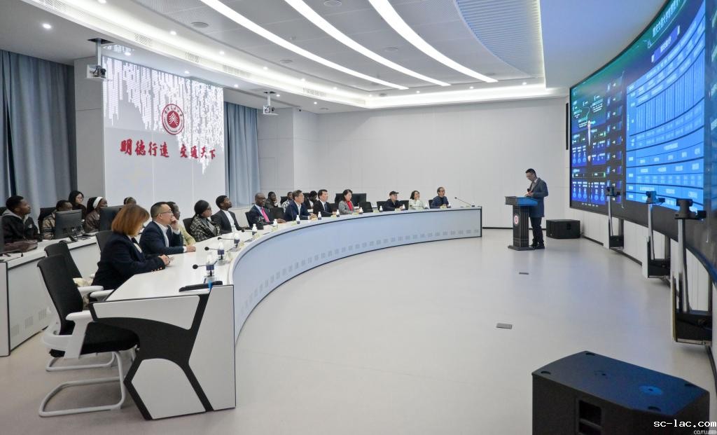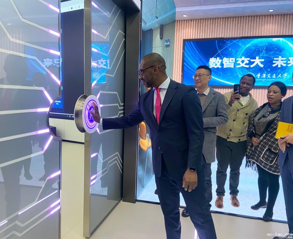 弗兰克·阿贾巴大使一行还在学校罗均副校长的陪同下参观了校史馆和智慧教育中心。在校史馆,弗兰克·阿贾巴大使一行深入了解了学校从1951年建校至今的发展历程,特别是围绕川藏公路等“共和国一号工程”所积淀的“两路”精神与桥隧技术优势。随后弗兰克·阿贾巴大使一行前往智慧教育中心,实地考察智能AI与大数据在教育教学中的应用实践。在中心展示区,工作人员通过现场演示、案例讲解等方式,介绍了学校在智能教学平台搭建、个性化学习方案设计、教育数据精准分析等方面的成果,亲身体验了AI辅助教学系统、虚拟仿真实验平台等智慧教育工具,直观感受到了科技如何打破传统教育边界,提升教育效率与质量。