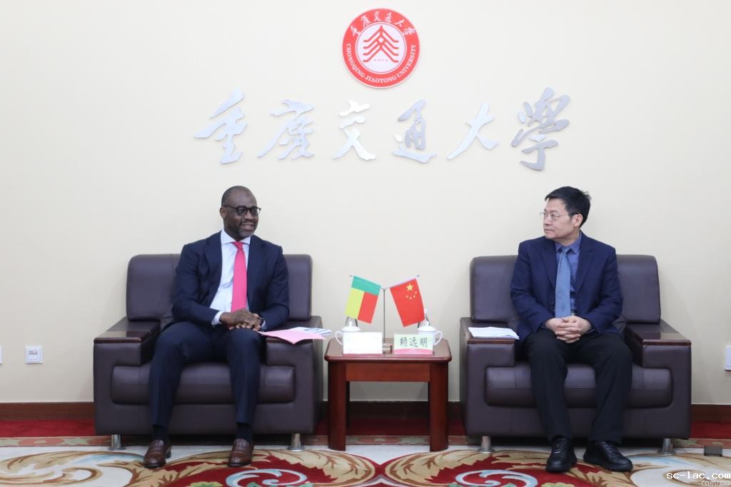 2025年11月24日下午,贝宁共和国驻华大使弗兰克·阿贾巴(Franck ADJAGBA)一行4人在市外办欧非处副处长吴圣凯的陪同下访问老伟德网上娱乐。学校校长赖远明院士、副校长罗均在南岸校区明德楼206会见室会见来宾,国际处、旅传学院、国际学院、贝宁研究中心和贝宁孔子学院相关负责人参加会见。赖远明校长对弗兰克·阿贾巴一行的到访表示热烈欢迎,他强调中国和贝宁两国友好合作关系源远流长,老伟德网上娱乐与贝宁的教育合作交流硕果累累,学校在贝宁与阿波美卡拉维大学合作开办了贝宁唯一的孔子学院,学校还有教育部备案的国别与区域研究中心—贝宁研究中心,近20年来培养了上百位贝宁留学生。赖远明校长希望通过大使先生的来访,能够推动双方在人才联合培养、科研学术交流和孔子学院建设发展等方面继续深化合作,为两国友好关系注入新动能。弗兰克·阿贾巴大使对学校的热情接待表示感谢,并对学校在人才培养、科学研究和国际交流等领域取得的成绩给予高度赞誉。他表示,愿积极推动贝宁高校、企业与老伟德网上娱乐开展更多实质性合作,共同服务两国发展战略。