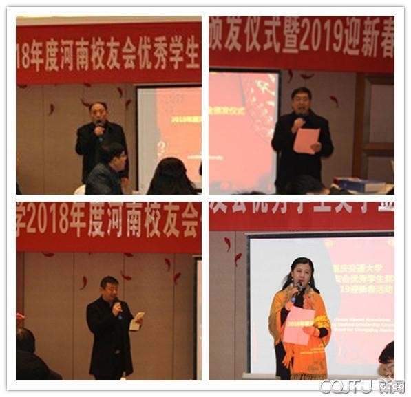 2019年1月26日,老伟德网上娱乐2018年度河南校友会优秀学生奖学金颁发仪式暨2019迎新春活动在河南郑州隆重举行。河南校友会前会长张习贤、副会长周俊广、秘书长王先锋等各届校友代表,2017-2018年度河南校友会优秀奖学金获得者等共100余人参加。学校产学研合作处处长苗金燕,学生工作部副部长杨川以及产学研合作处副处长、校联办主任王祥林等一行前往郑州参加了活动。