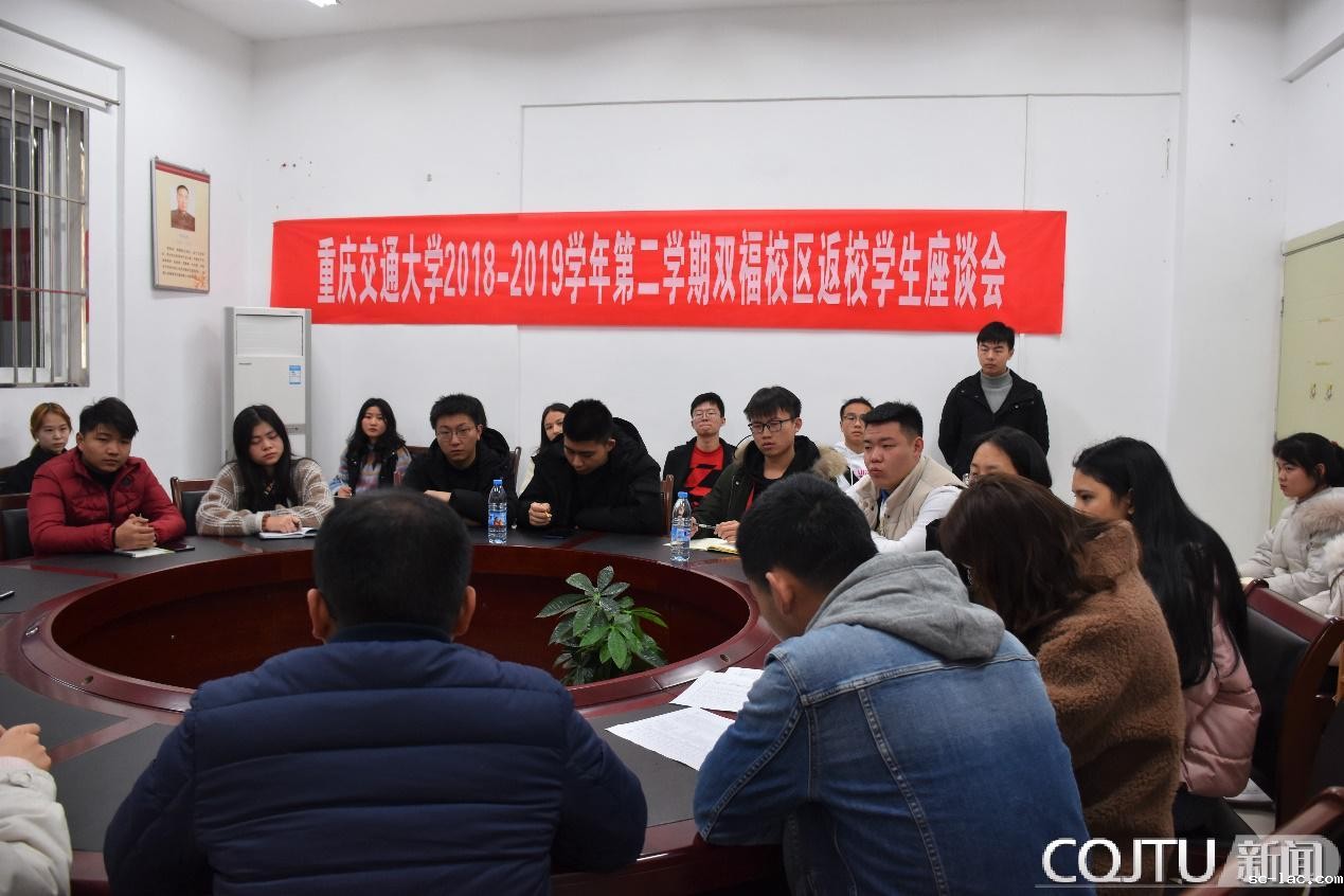 新学期伊始,为进一步了解我校学生假期生活和返校后的思想状态,更有针对性地开展学生工作,2月24日下午,学生工作部(处)分别在南岸校区和双福校区召开了返校学生座谈会,近60名本科生、研究生学生代表参加了会议。学生工作部(处)副部长任康丽、相关科室负责老师及学生德园小区管委会老师参加了会议。