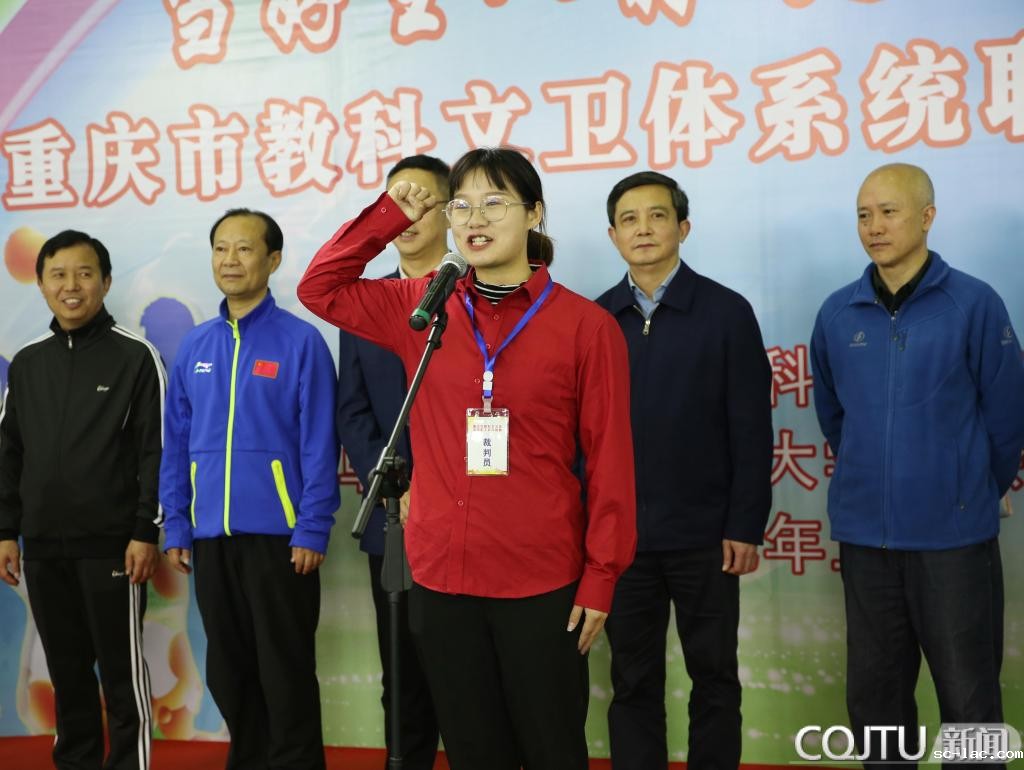 国家二级乒乓球裁判员夏静代表裁判员宣誓