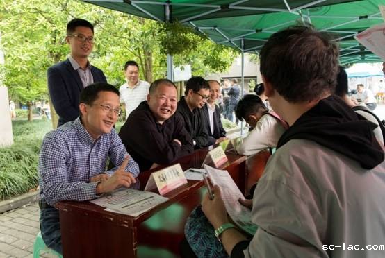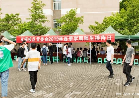 4月29日中午,双福校区在德园十三舍旁开展了2019年春季学期师生接待日活动。双福校区管委会、双福校区党总支、学生德园小区管委会、图书馆、信息化办公室、校医院、后勤分公司等相关部门负责人认真倾听师生意见建议,为他们排忧解难。