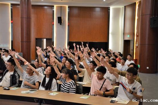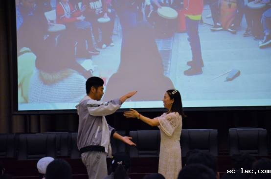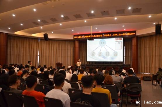 讲座分为两部分,第一部分为理论知识的简要介绍。范尧老师介绍了压力反应的S-ABC模型以及心理健康的重要地位:心理健康至关重要,如果一个人的心理问题没有解决,长期的压力心境容易导致身体的疾病,“身体不说谎”。第二部分为体验部分,范尧老师将音乐和心理治疗相融合,带领现场学生体验了音乐冥想—心之宁静、身体打击乐—身之跃动和歌圈—身心飞扬三大项目,让同学们进一步感受了音乐和身体的良好互动对心理产生的影响。