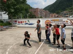 下午两点,张森和刘亮老师为40名左右的铁甲村小学生上了一堂别开生面的篮球课,为同学们传授了熟悉球性、运球、传球、投篮的基础动作,并组织了一场篮球比赛。