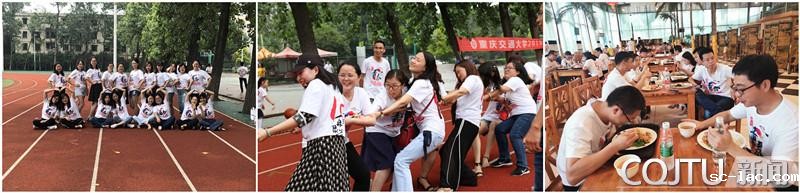 上午,校友们参观了当年住宿的寝室和驰骋的球场,举行了怀旧篮球赛和拔河赛,比赛轻松而惬意,大家仿佛重回那段青春岁月,每个人脸上都洋溢着幸福的笑容。临近中午,校友们来到生态食堂享用校联办特地准备的校友怀旧餐,洋溢着温馨浓厚的母校情谊!