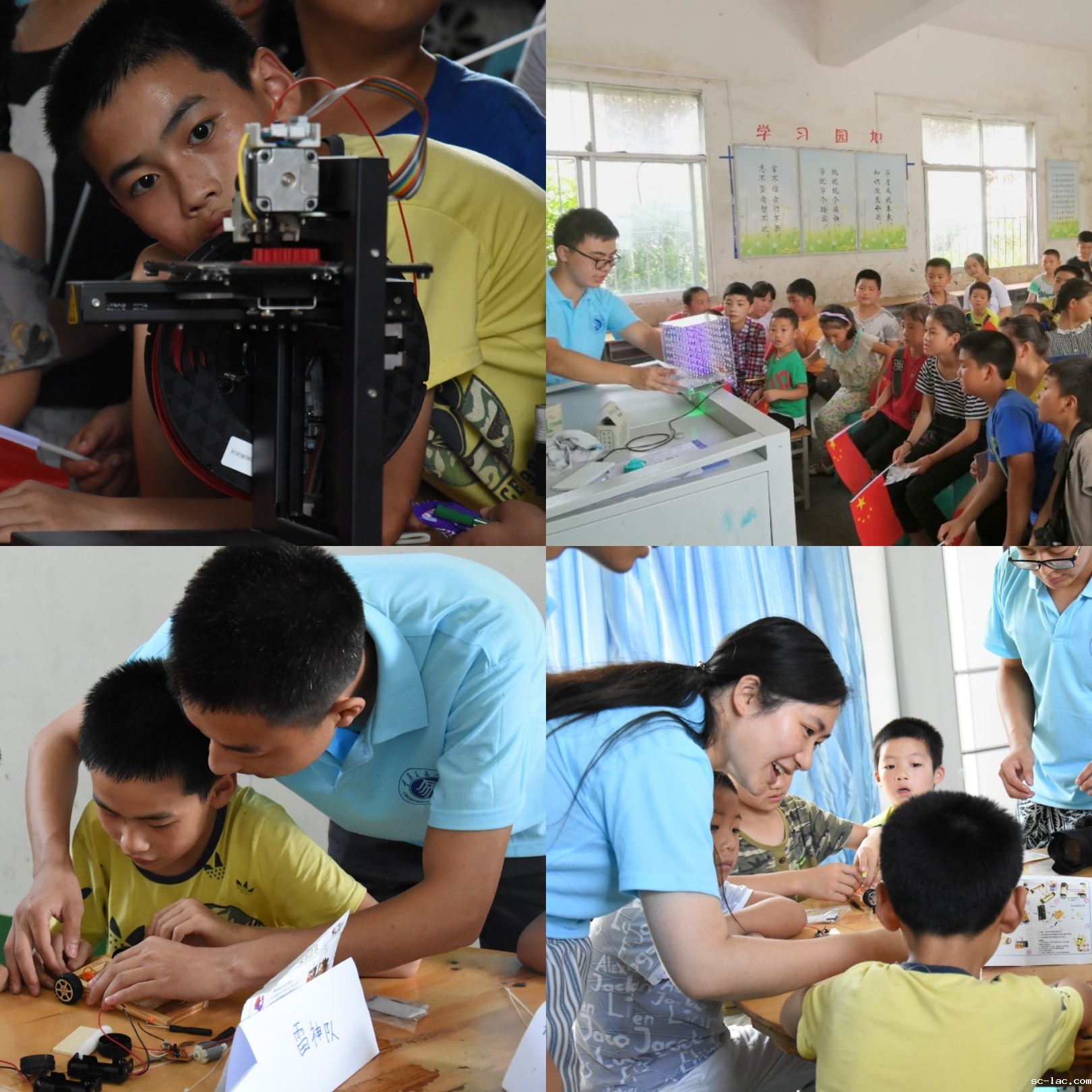 铁甲村地处于贫困山区,教育教学资源匮乏,铁甲小学目前只开设了语文、数学、英语等常规课程,孩子们很少有机会能了解到科学方面的信息。为了改善扶贫攻坚战中教育这块“短板”,小分队带着3D打印机、自制遥控小车材料、光立方、无人机等硬核装备到铁甲小学开展机“智”童行,摆渡梦想科技扶智体验课。