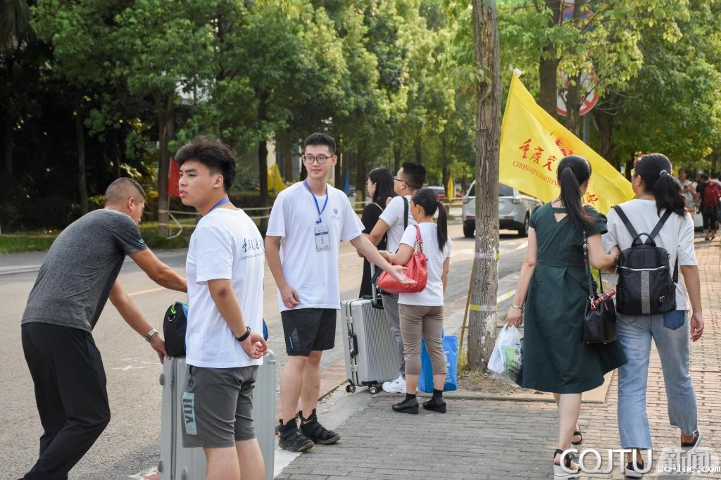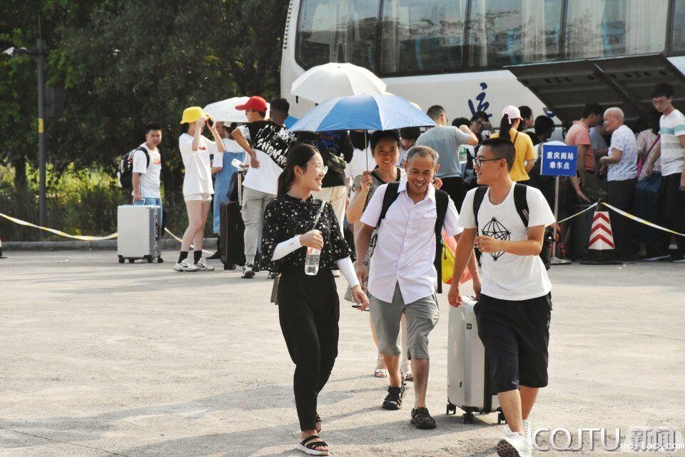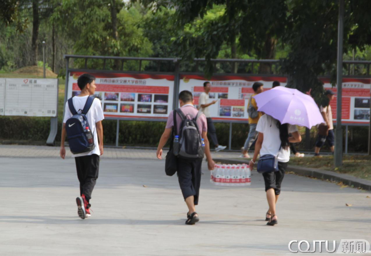 提着行囊,新生及家长兴奋地踏上重庆交大的热土